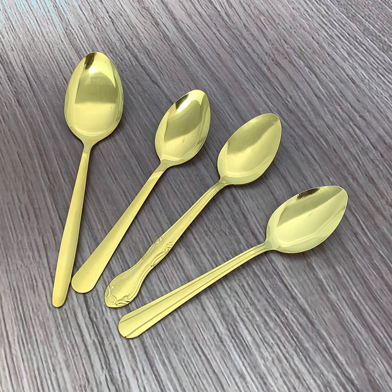 不锈钢勺子高颜值餐勺家用餐厅吃饭勺喝汤汤勺工厂批发加厚金色勺