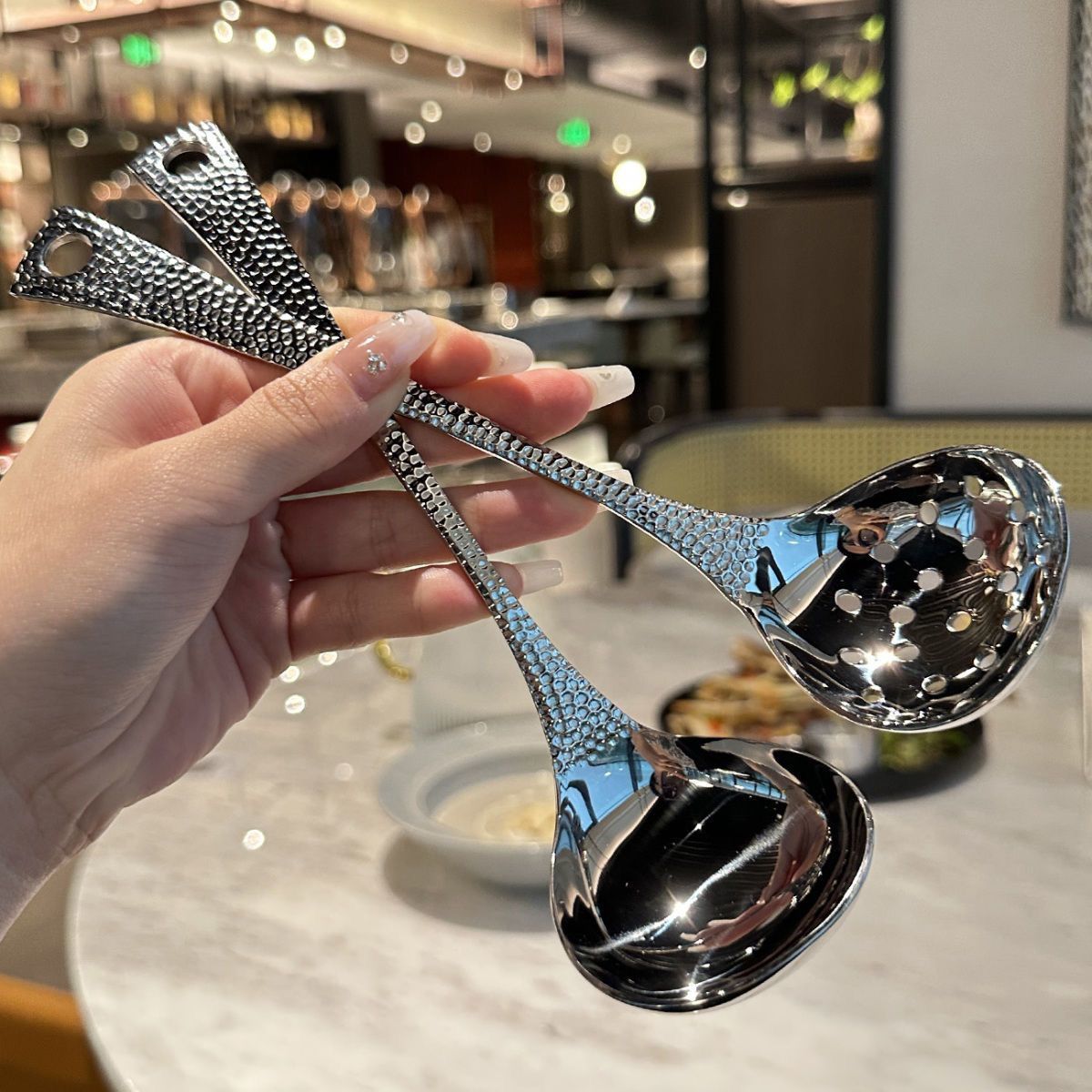 不锈钢鱼鳞柄勺子汤壳汤漏网红长柄汤勺餐厅盛汤勺家用火锅漏勺