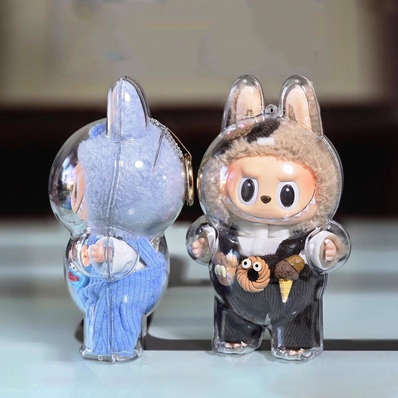 labubu保护壳一代三代透明保护套搪胶毛绒防尘罩防尘防污遛娃挂件
