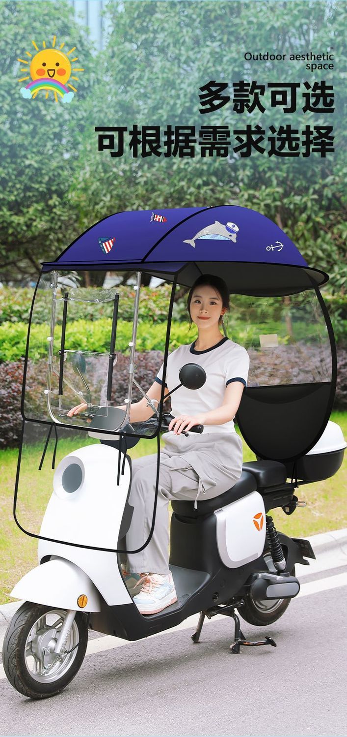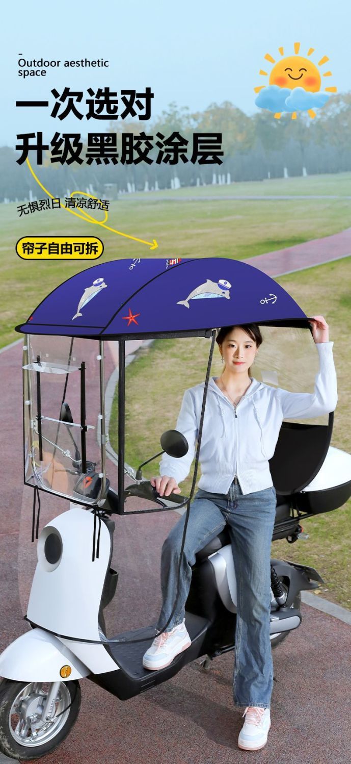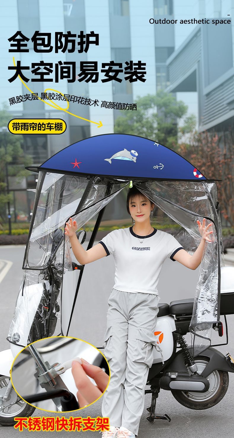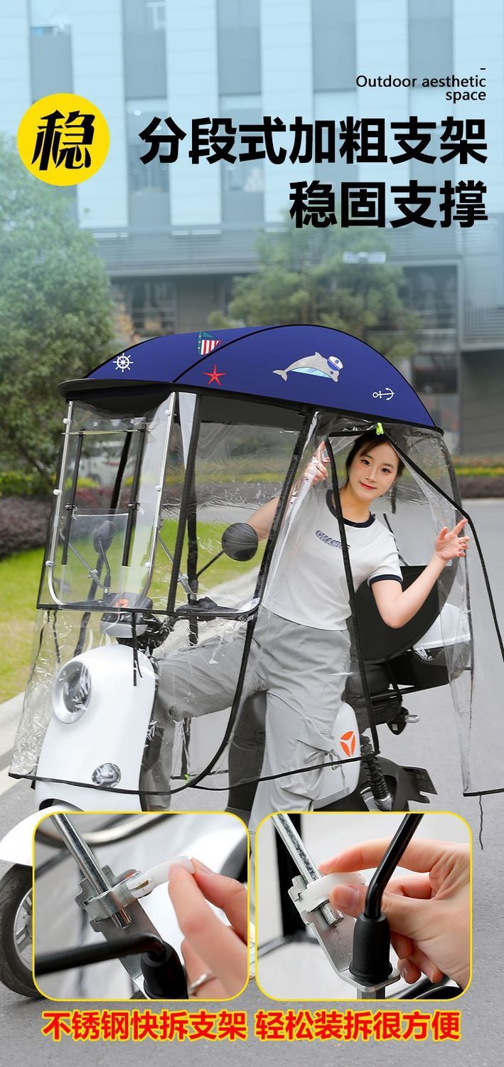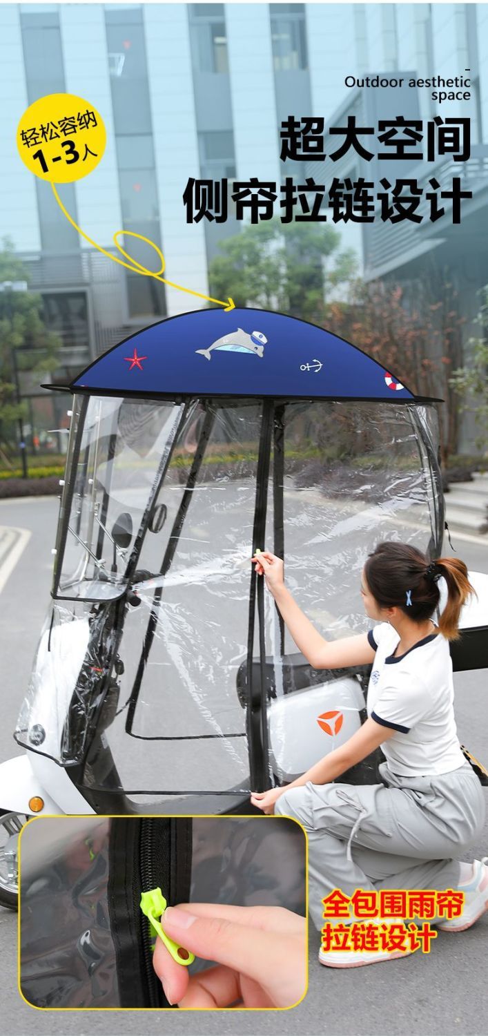 小型電気自動車用雨よけ、完全密閉型レインカーテン、取り外し可能なサンシェード、防風オートバイバッテリー、二輪ユニバーサル傘