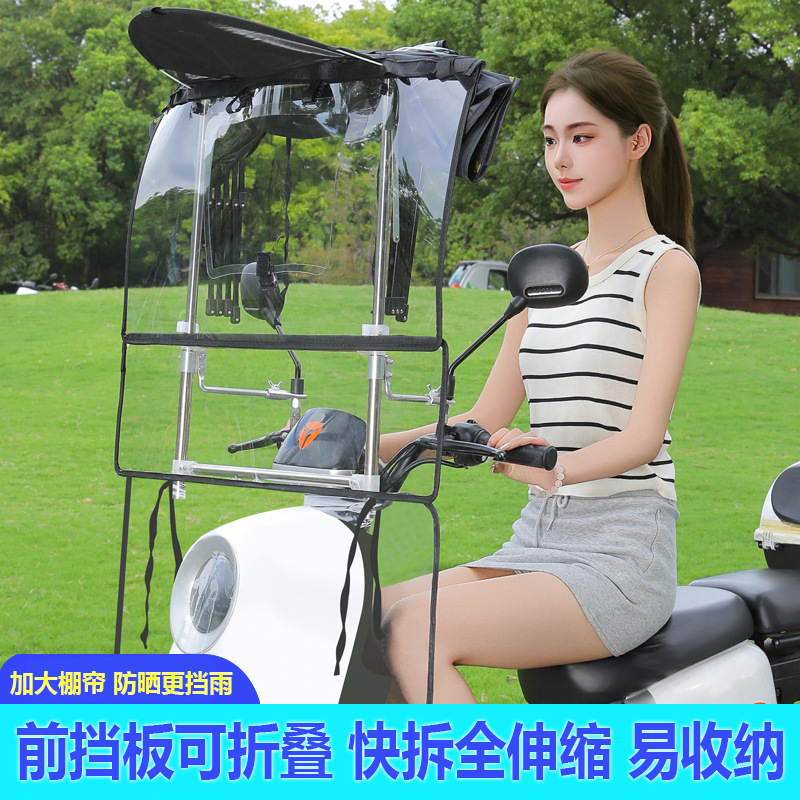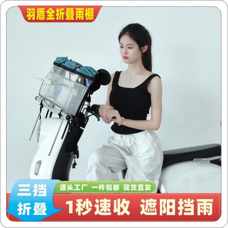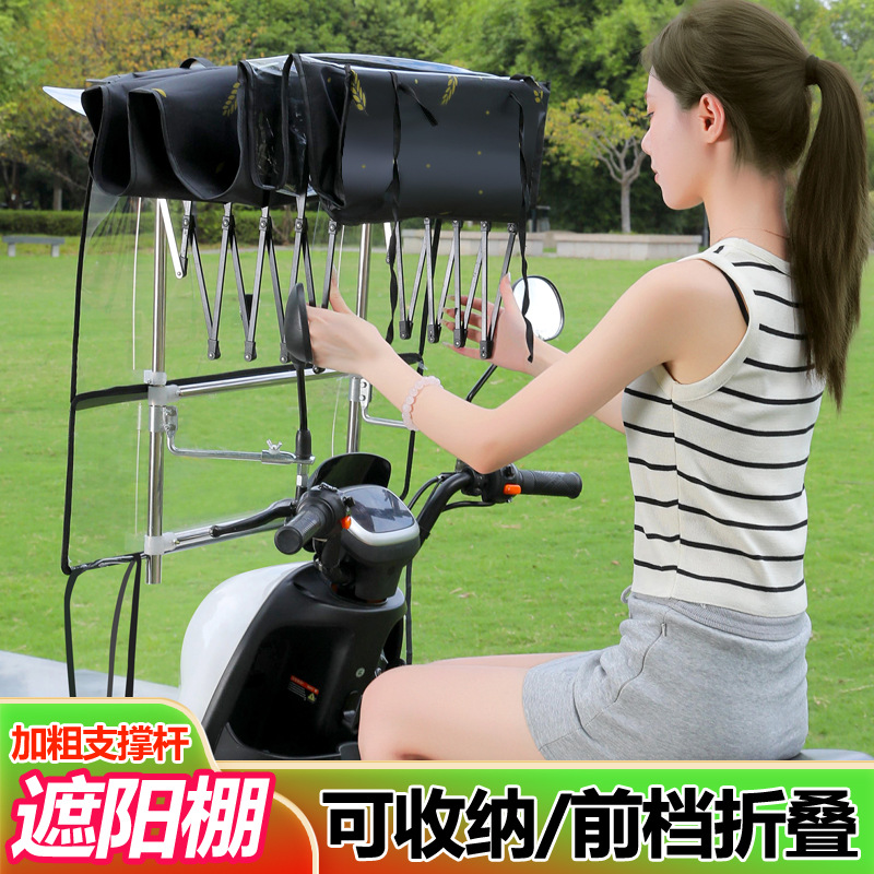 电动车全折叠新款雨棚电瓶摩托车挡雨防晒伸缩遮阳伞挡风折叠雨篷