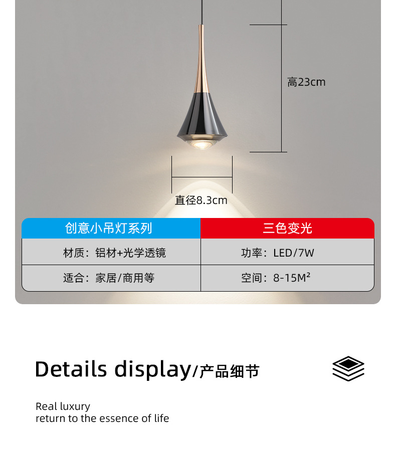 卧室床头吊灯极简意式创意设计感餐厅吧台小吊线灯可升降水滴灯