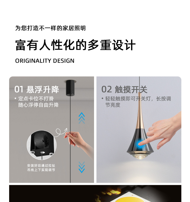 极简意式创意设计感吧台餐厅吊线灯高级感可升降触摸氛围水滴吊灯