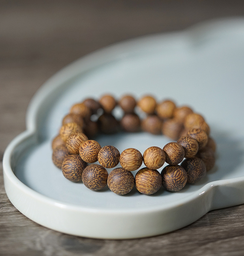 コンム沈香オリジナルエコブレスレット、仏珠、爽やかな香り、古材、古珠、数珠、高光沢、無塗装、無ワックス