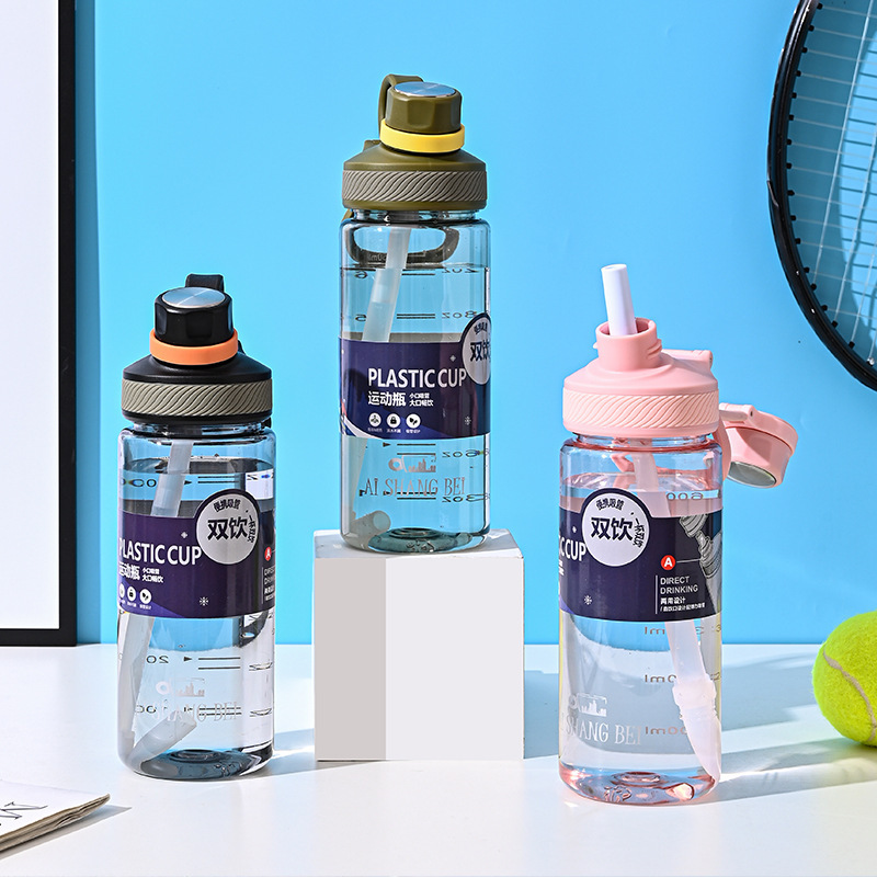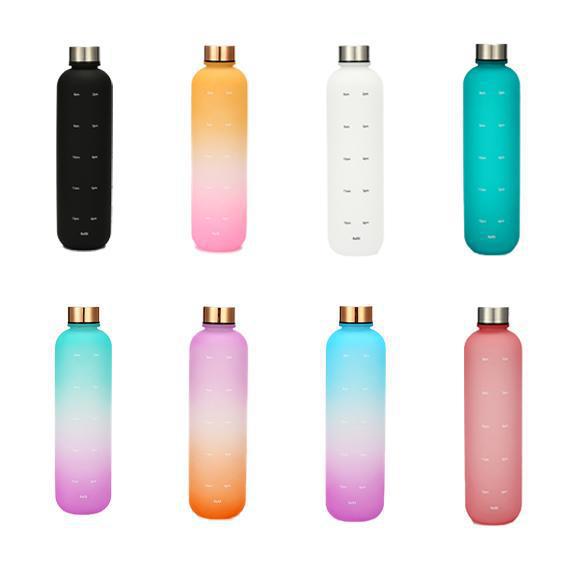 1000ml小口スチール蓋カラフルなグラデーションスペースカップシンプルなスポーツスペースプラスチックタイムスケールウォーターカップ