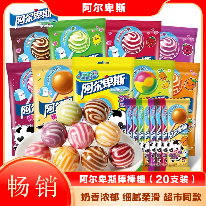 アルプスロリポップ、様々なフレーバー、スーパーマーケットで販売されている、人気のカジュアルスナックキャンディー