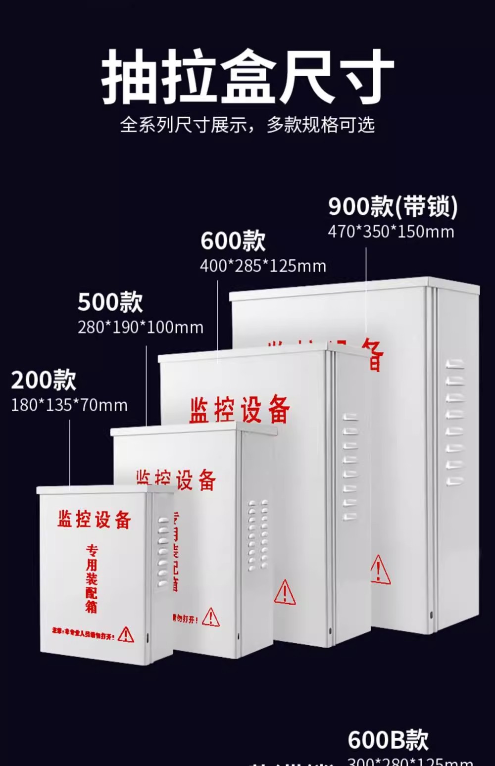 规格 B2(200)18×13×7CM铁制,C1(500)28×19×10CM铁制,B3(300)28×19×7CM铁制,C2(300B)23×20×6CM铁制,C4(900B)28×26×9CM钥匙锁,B4(600B)30×28×12CM铁制,B5(600)40×28×12CM铁制,C5(900A)40×33×10CM钥匙锁,B6(900)47×35×15CM钥匙锁,A8(800A)小号塑料防水箱,A10(800E)中号塑料防水箱,800F 大号塑料防水箱,A6(700B)小号塑料防水盒,A1(700)小号塑料防水盒,A5 (800B) 中号塑料防水盒,A2(700C)中号塑料防水盒,A7(A10)小号塑料防水盒,A3(800)小号塑料防水盒,A16(800C)塑料防水箱,A15(400A)双层防水箱(带锁,D2(100)不锈钢防水箱,D3(101)不锈钢防水箱,D5(102)不锈钢防水箱,E5(201)不锈钢防水箱,E6(202)不锈钢防水箱,E7(203)不锈钢防水箱,201 大号铁制防水箱,202 大号铁制防水箱,量大价优 联系客服,A10(800E)塑料透明防水箱
