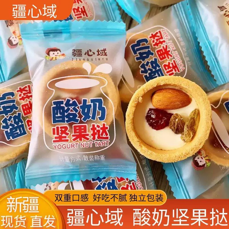 疆心域酸奶坚果挞巴旦木仁葡萄干果干巧克力夹心饼干网红休闲零食