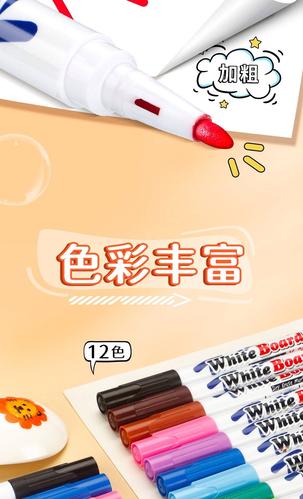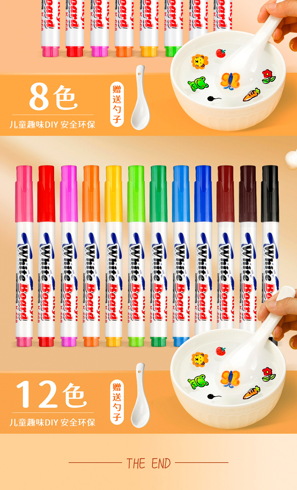 彩色漂浮笔大容量儿童DIY创意绘画遇水漂浮笔安全环保白板笔批发