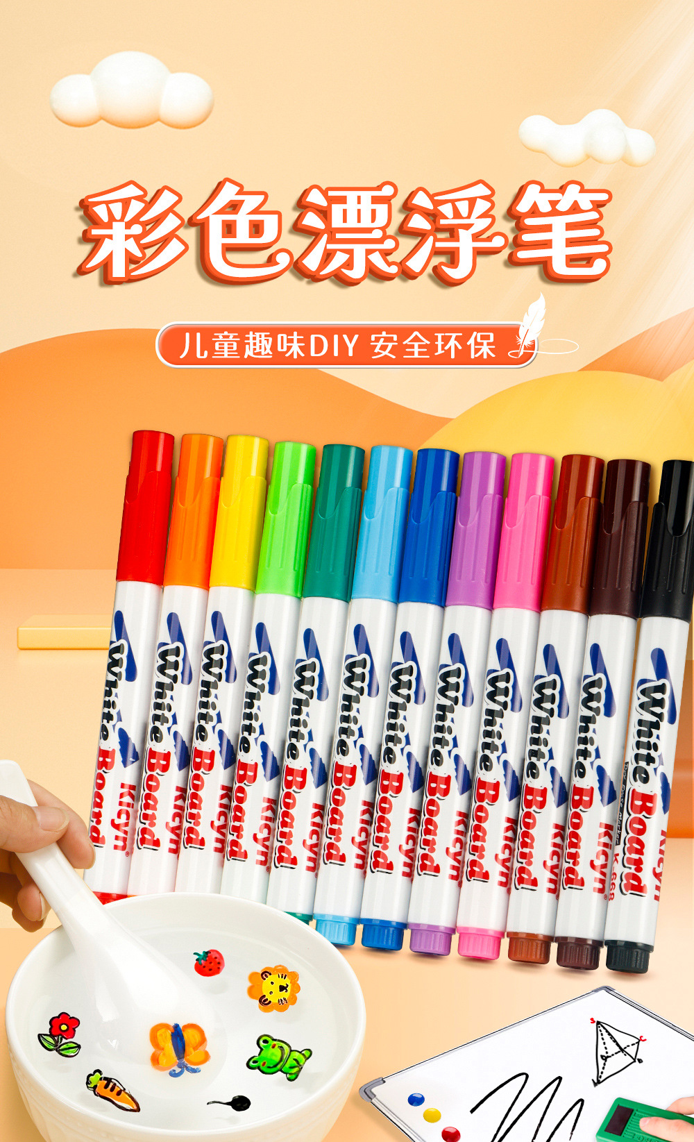 漂浮笔遇水漂浮水彩笔彩色水性悬浮笔儿童DIY创意白板笔现货批发