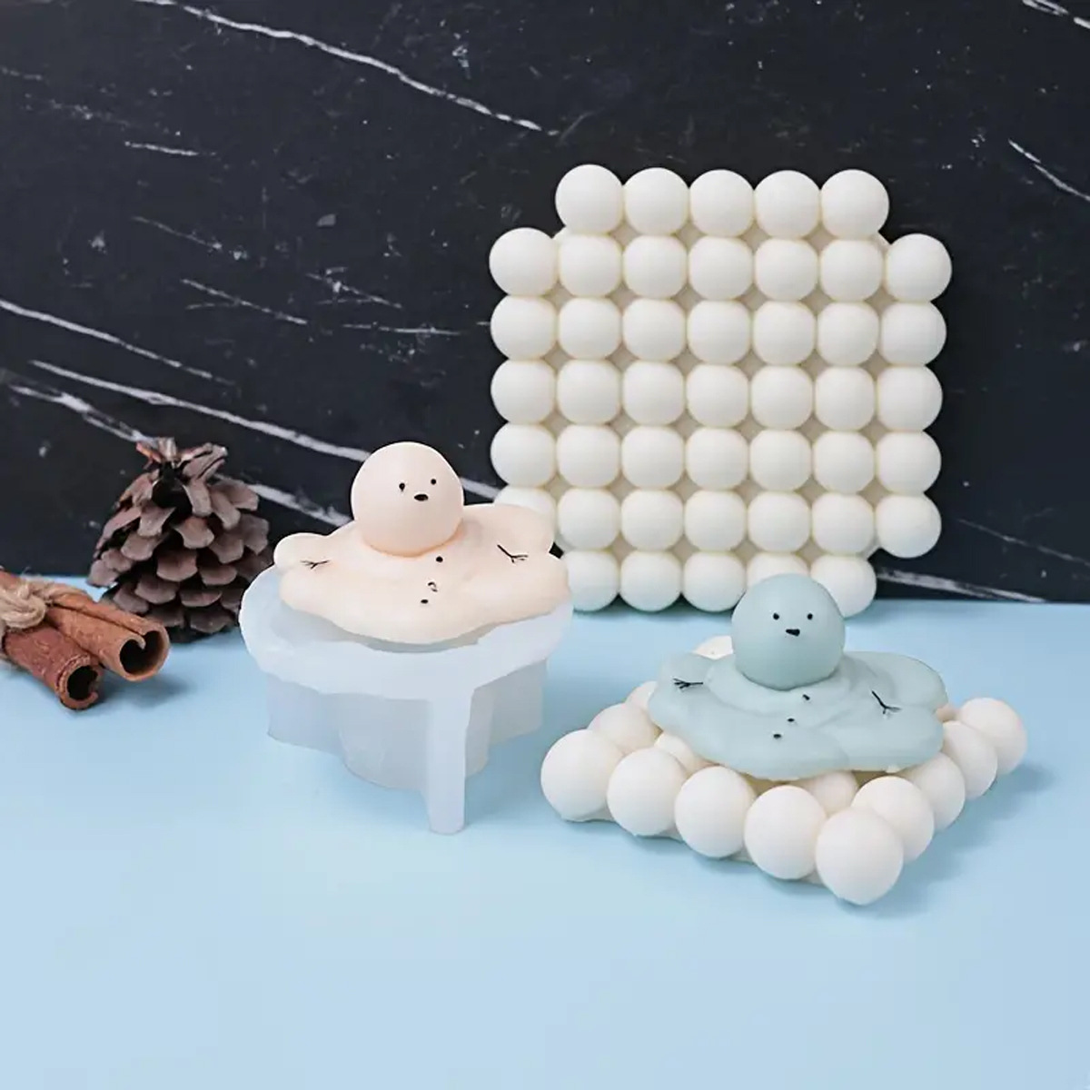 融化雪人蜡烛硅胶模具圣诞节DIY肥皂石膏冰格蛋糕烘焙模具跨境