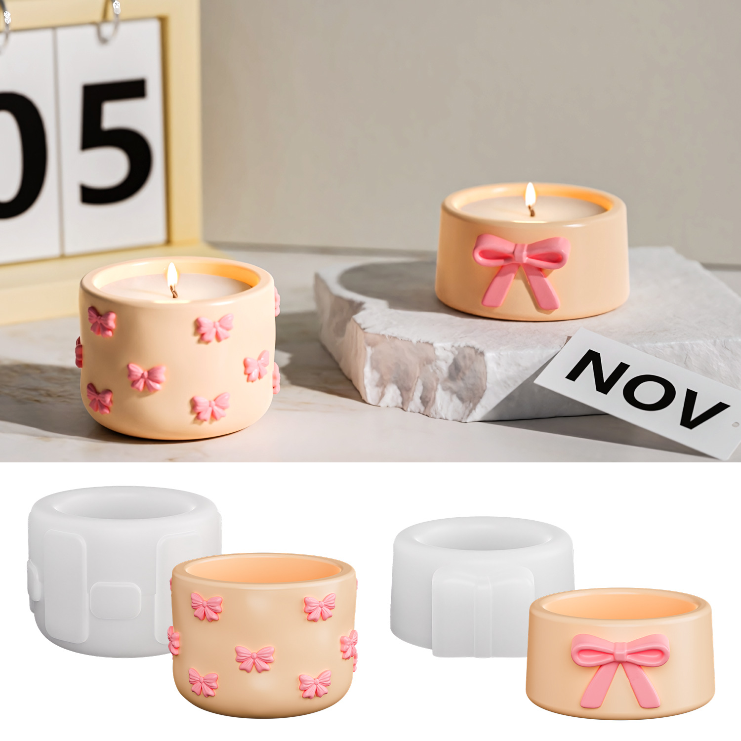 亿兴diy大小蝴蝶结收纳罐硅胶模具蜡烛香薰杯石膏摆件滴胶模具