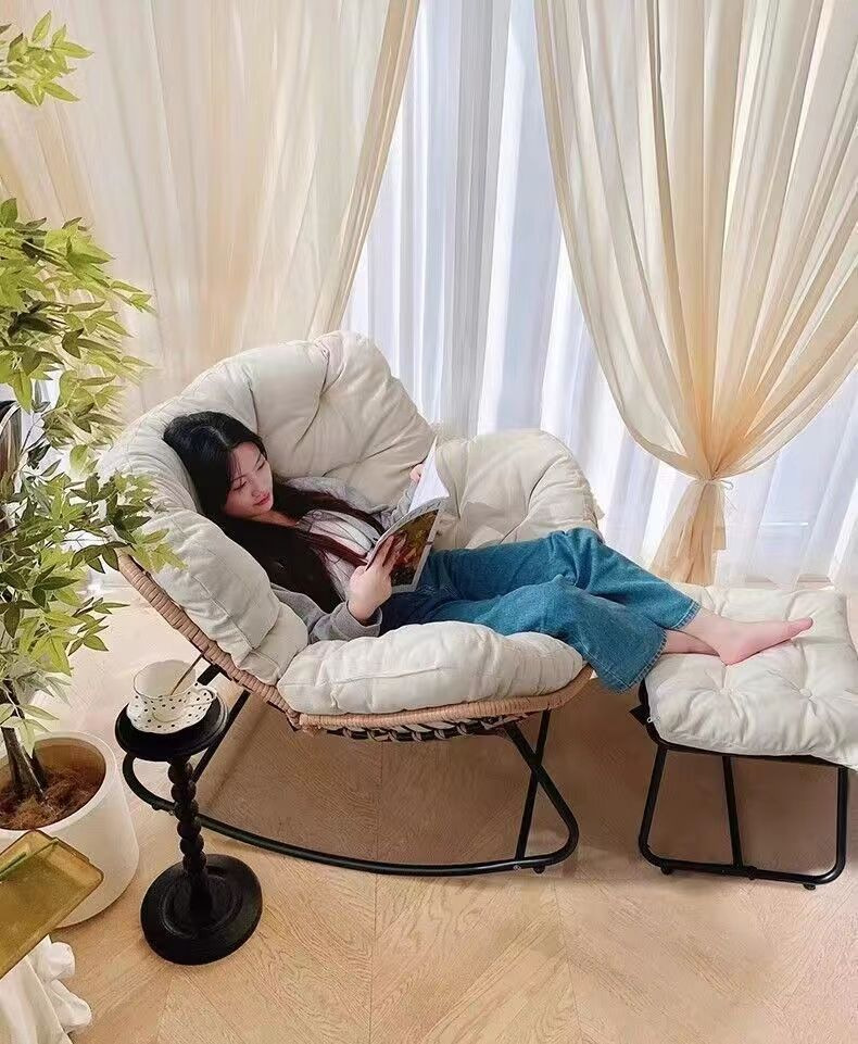 籐ロッキングチェア、高級レジャーローファーソファ、ロッキングチェア、寝室用女の子用リクライニングチェア、ダブルソファ、外国貿易専用
