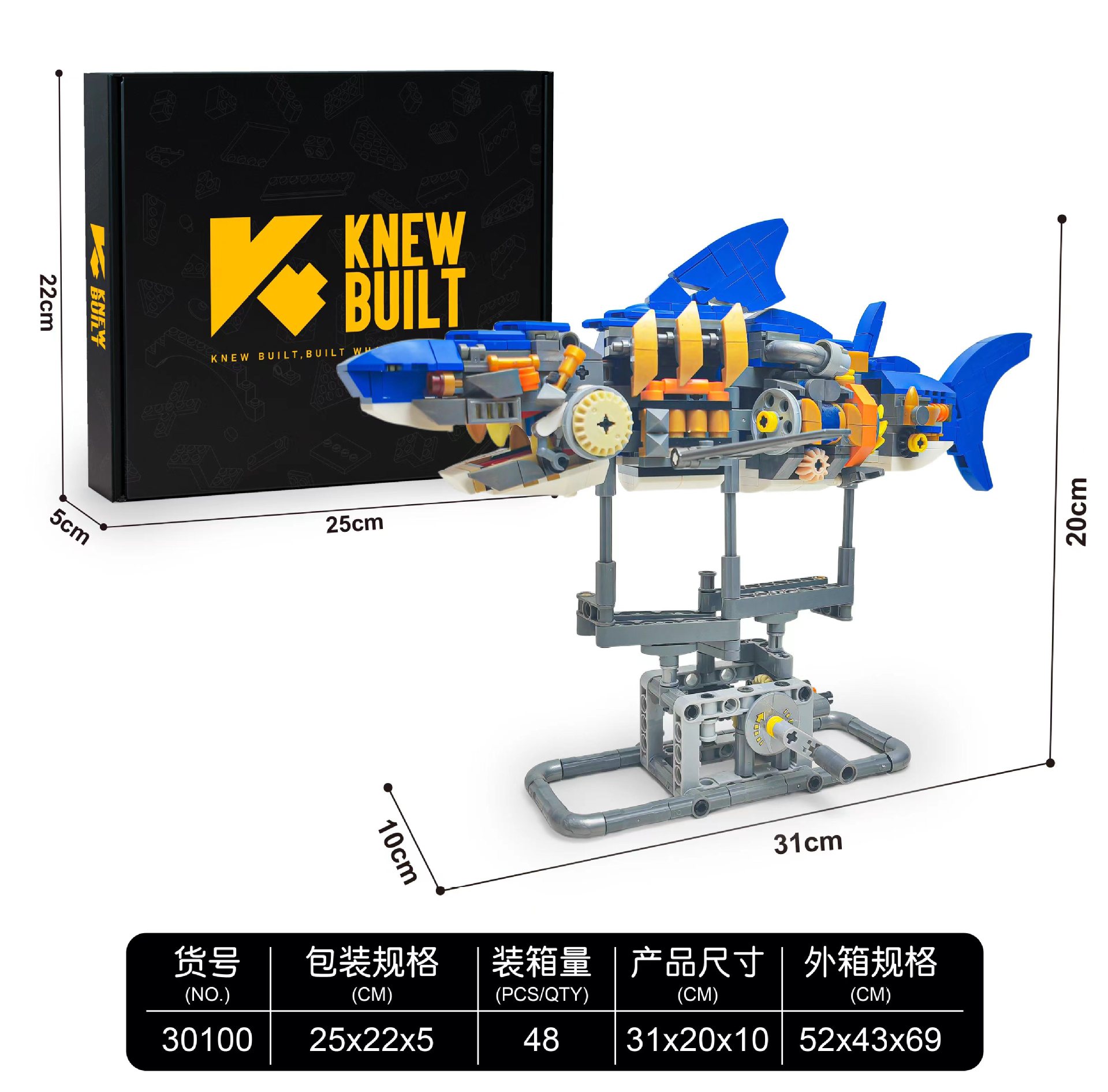 跨境机械鲨仿生拼装儿童鲨鱼绿光巴士积木模型摆件玩具魔法书批发