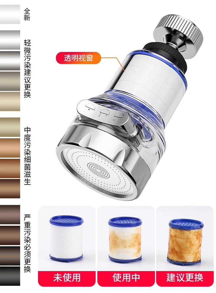 蛇口フィルター家庭用水道水清浄機の水洗い洗面器の蛇口は回転して飛散防止ができます。