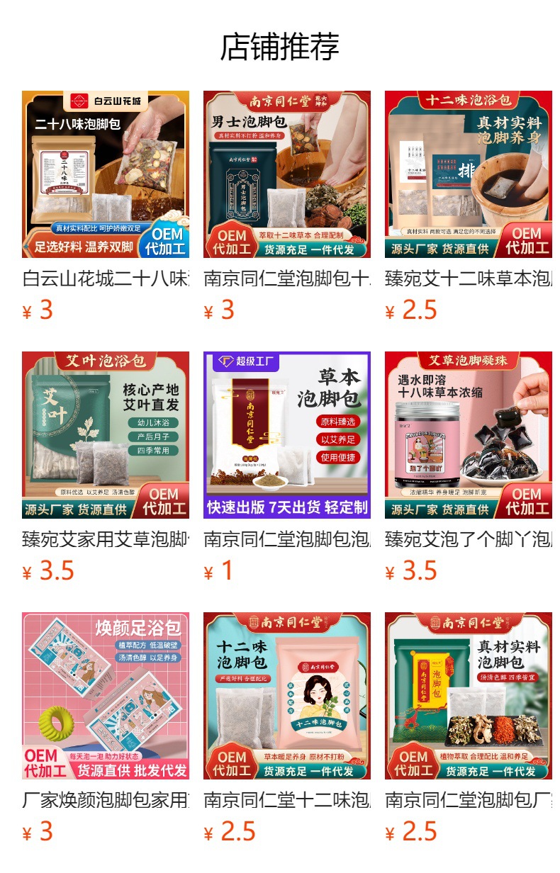 南京同仁堂泡脚包厂家四味足浴包泡脚粉药包艾草粉包足浴批发保健