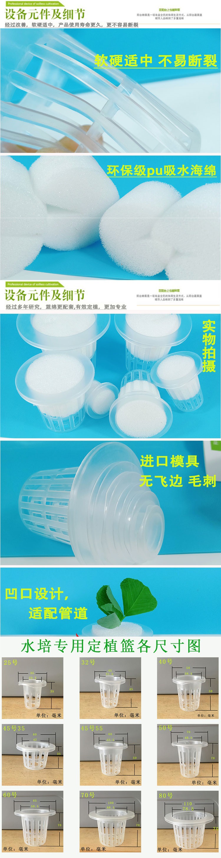 水耕植物と花の植栽バスケット、丸型深野菜根固定装置、無土壌栽培装置、水耕プラスチック厳選