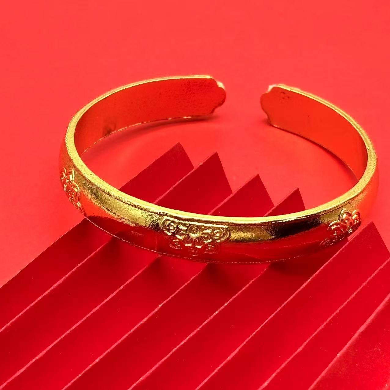 古法伝承巻草紋金フープブレスレット女性ベトナム沙金素輪紫荊花紋巻紋中実ブレスレット宮