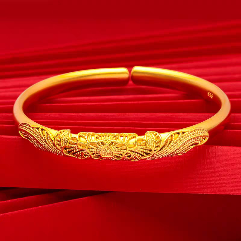 女性用金描き祝福ブレスレット、ソリッド古代金描きオープンブレスレット、桜と梅の花のブレスレット、Zhao Fu Yuyu ライブブロードキャストホットアイテム