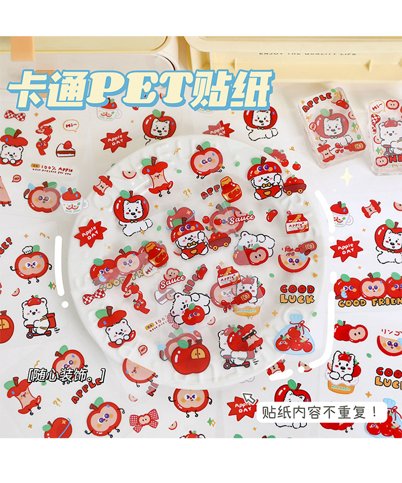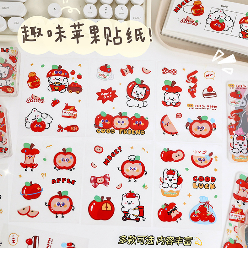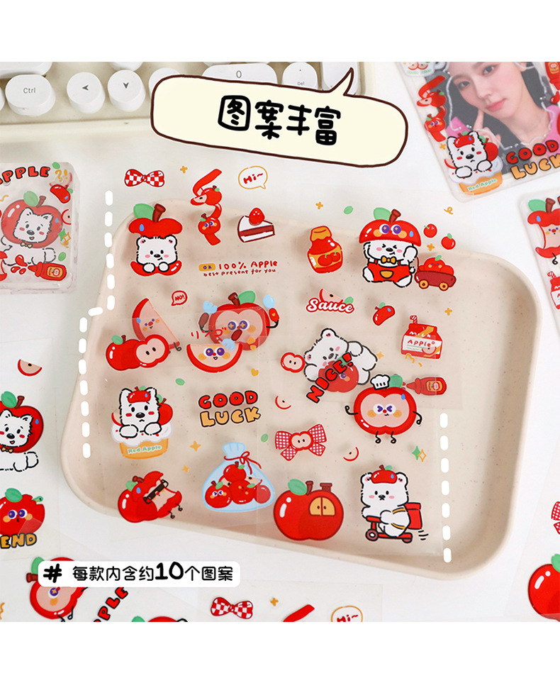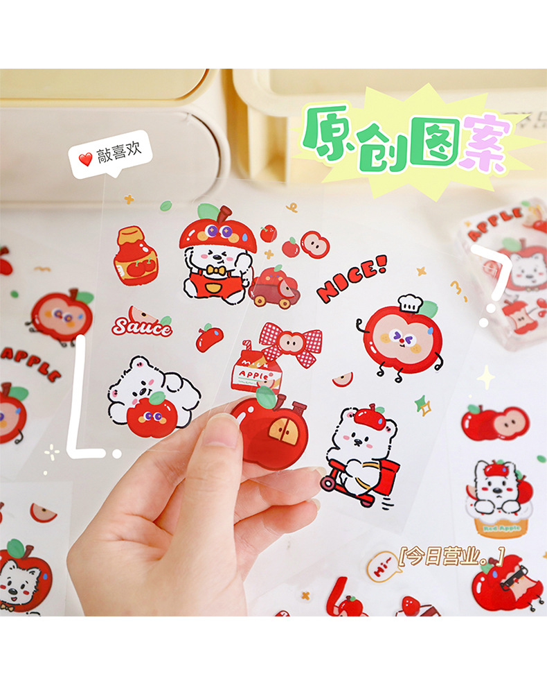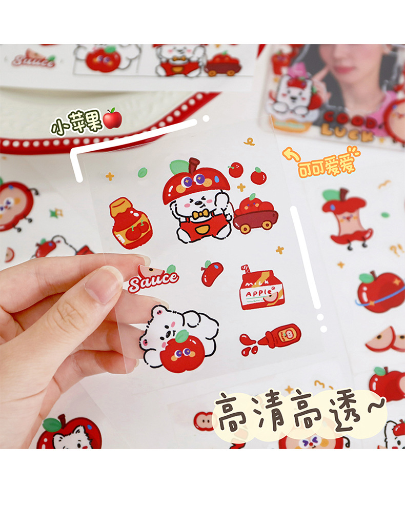 漫画アップルステッカーかわいい透明 PET ステッカー漫画防水ステッカー DIY ハンドブックステッカー携帯電話ウォーターカップ