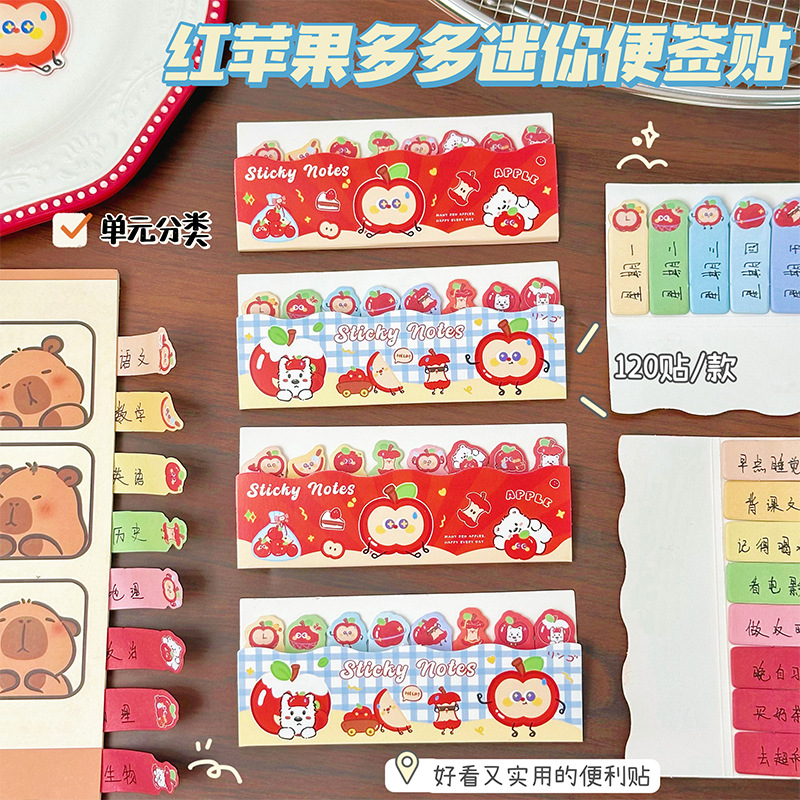苹果多多索引贴ins风有粘性N次贴卡通排排坐便利贴学生标记留言纸