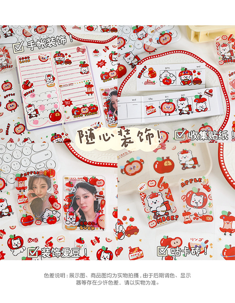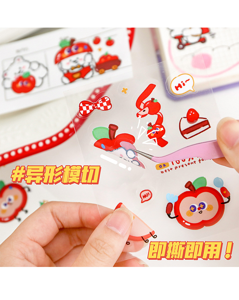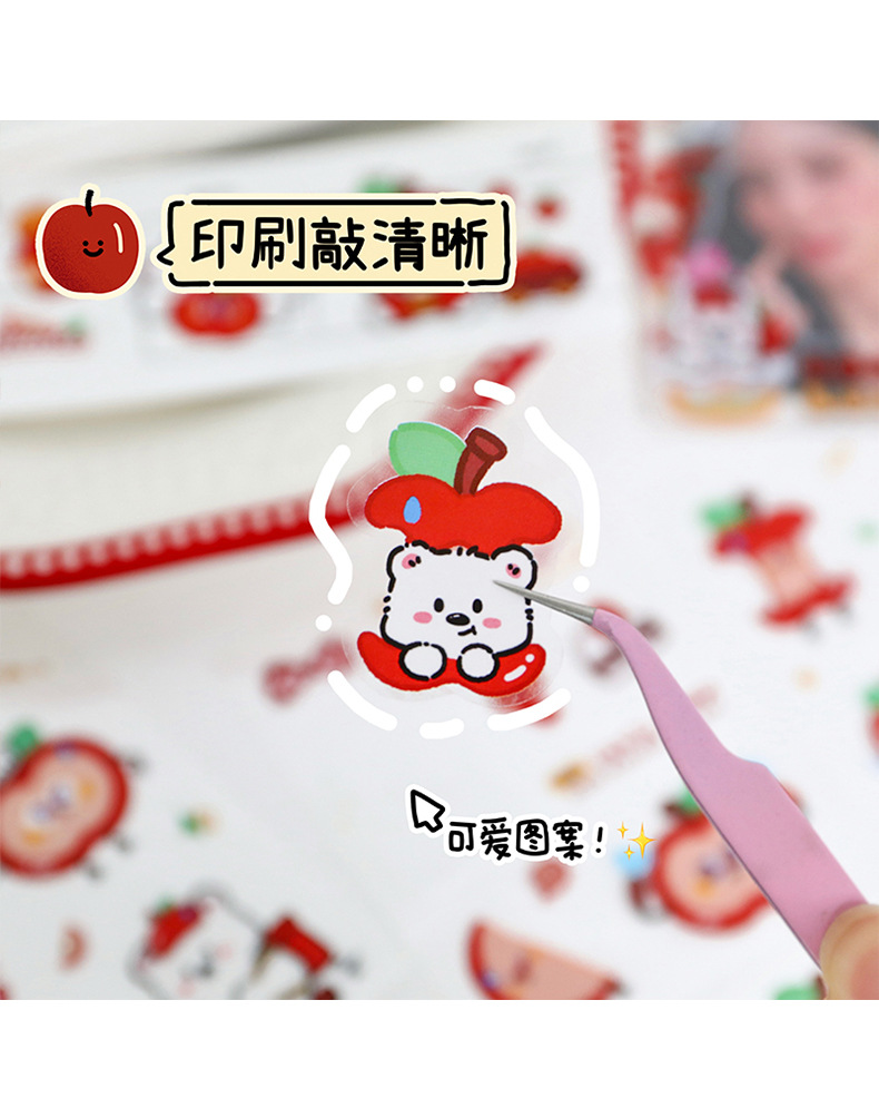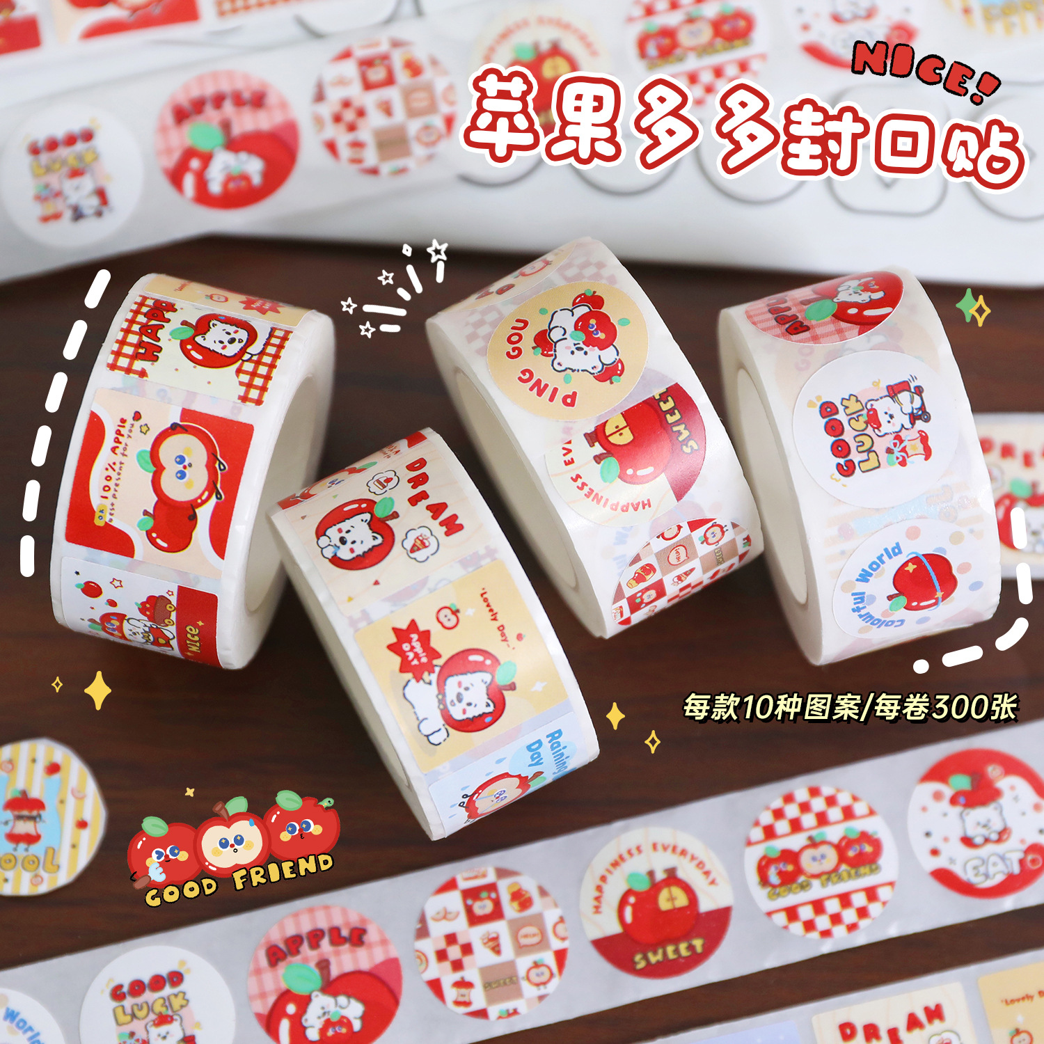 苹果多多不干胶贴纸可爱卷卷封口贴创意手帐贴纸DIY装饰小图案贴