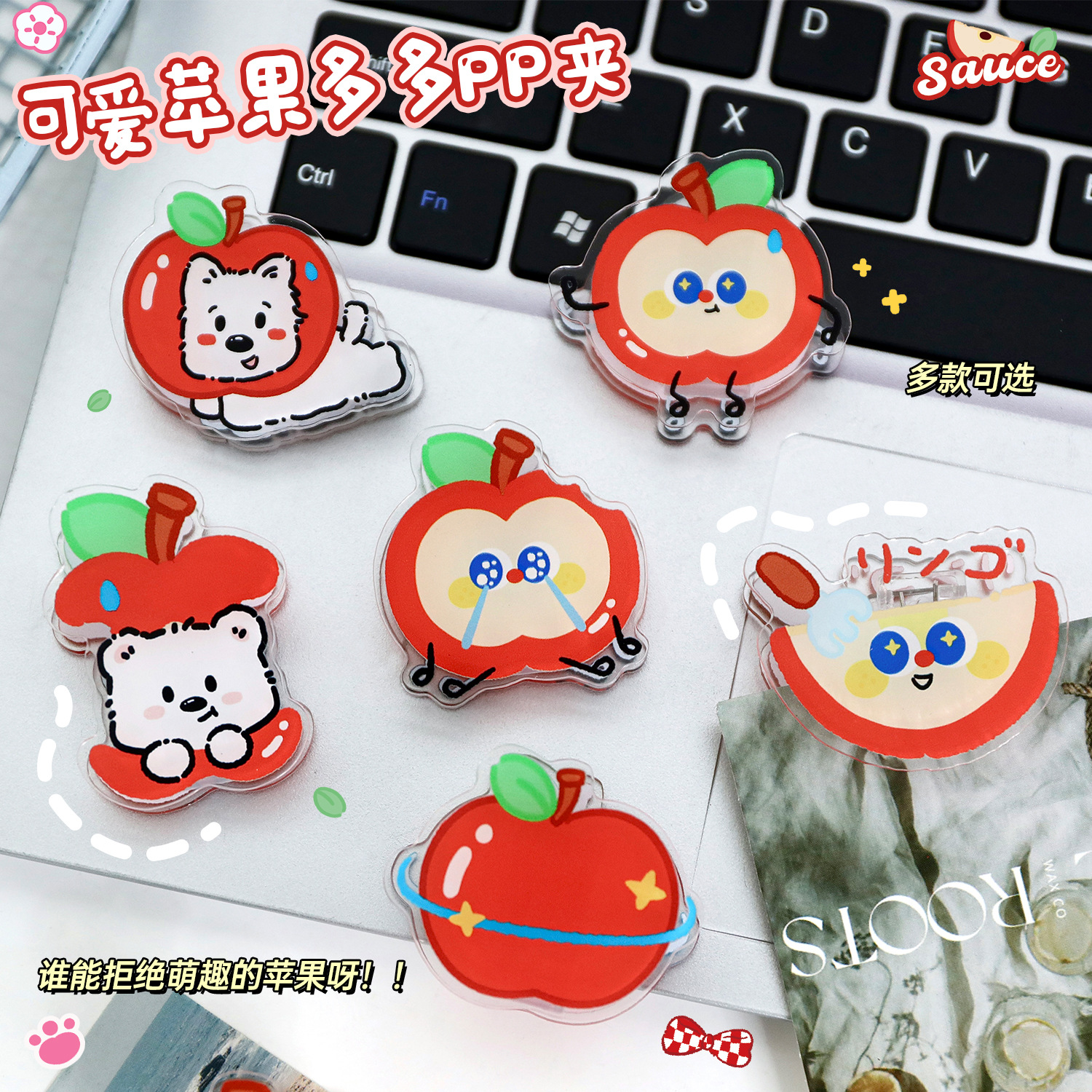 卡通苹果PP夹可爱装饰手帐夹红色亚克力夹子学生试卷夹零食封口夹
