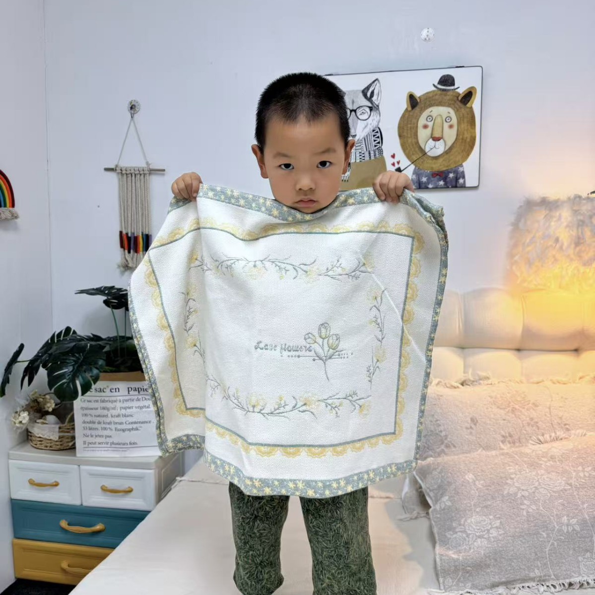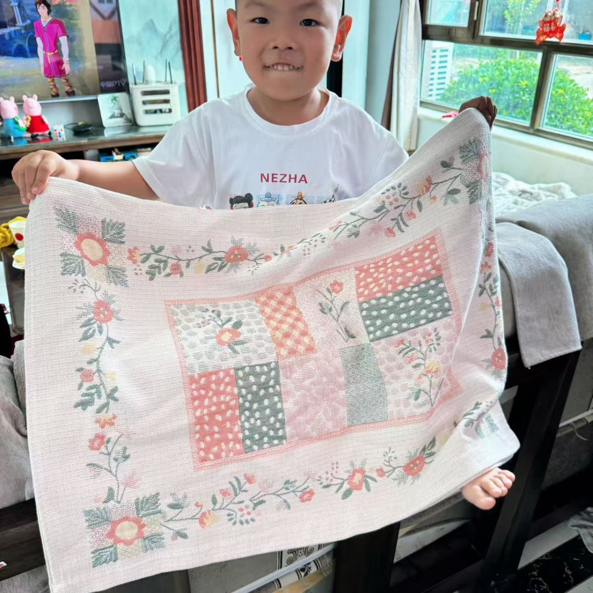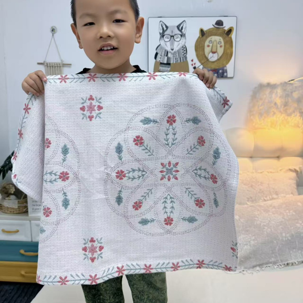 花柄シリーズ 麻小タオル 子供用フェイスタオル 4重ガーゼ ジャガードハンカチタオル 幼稚園フェイスタオル