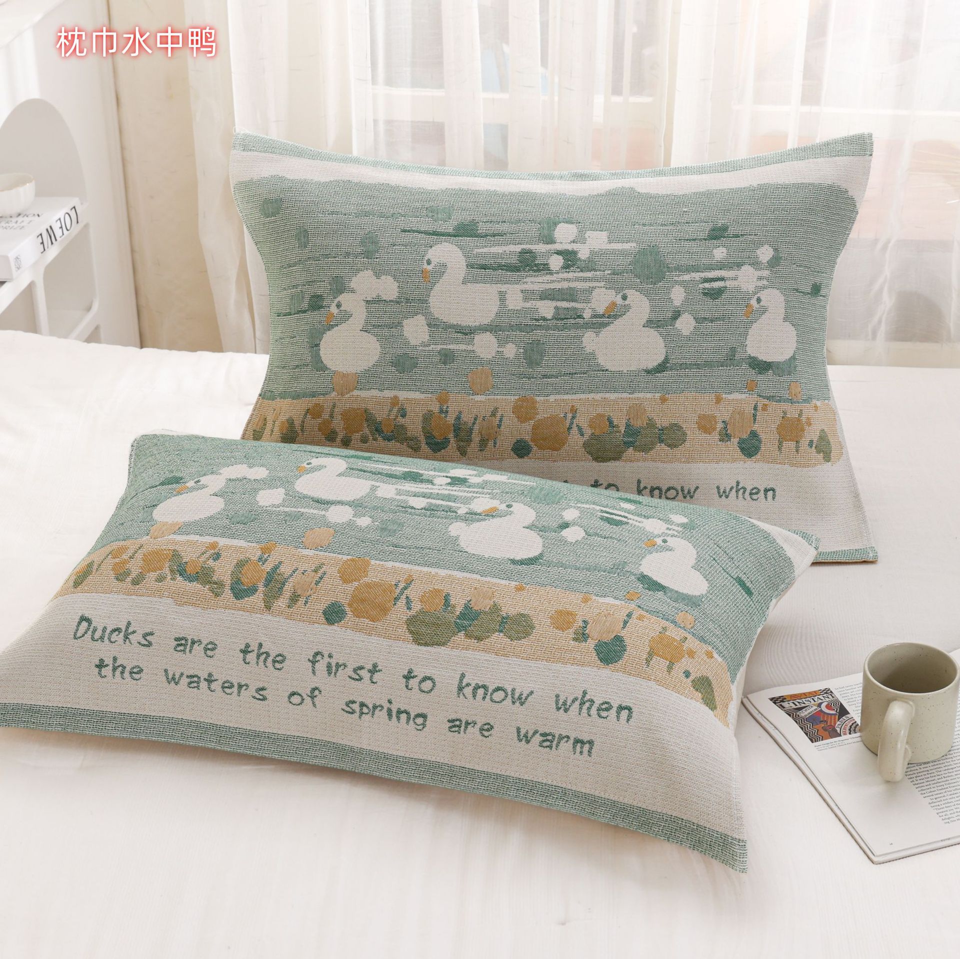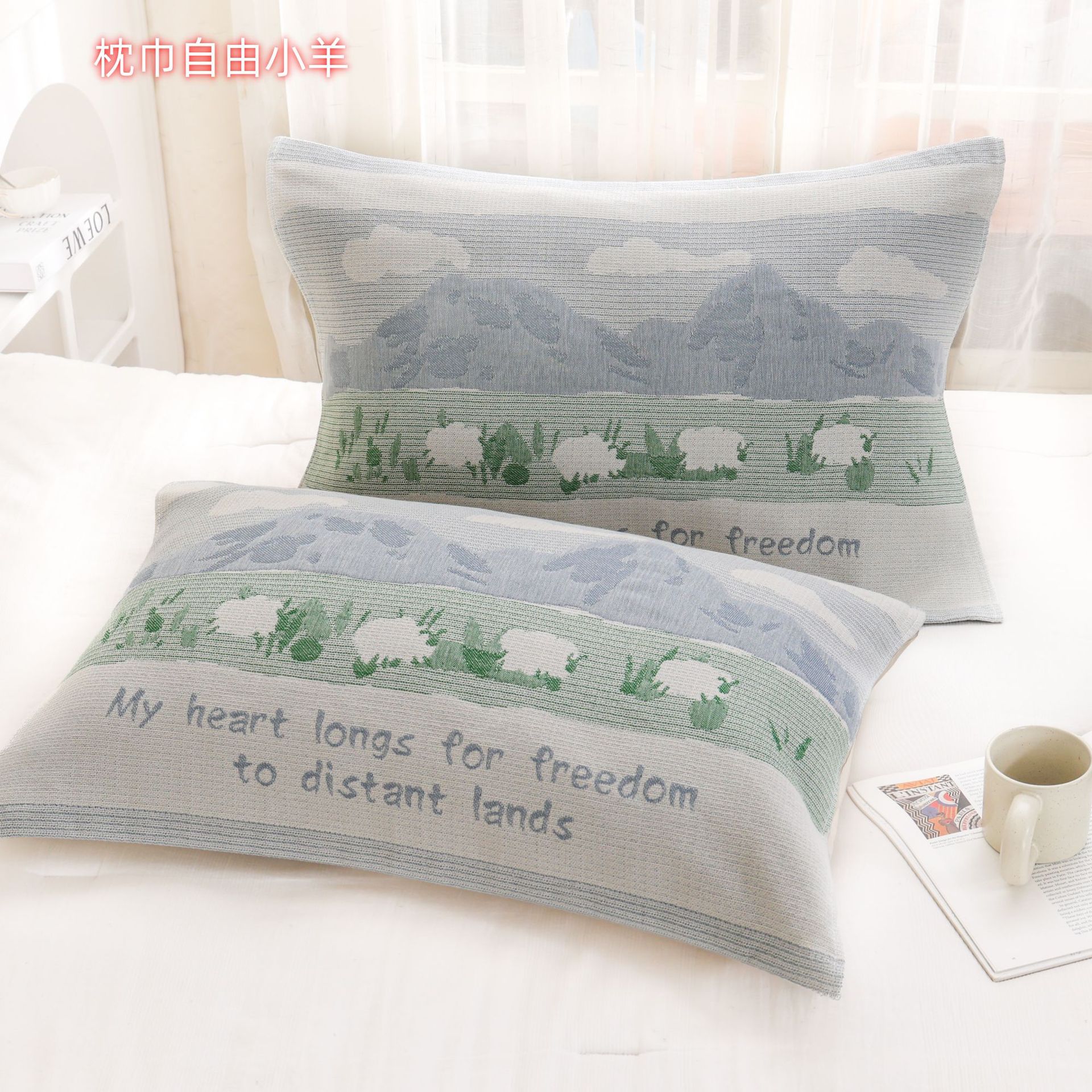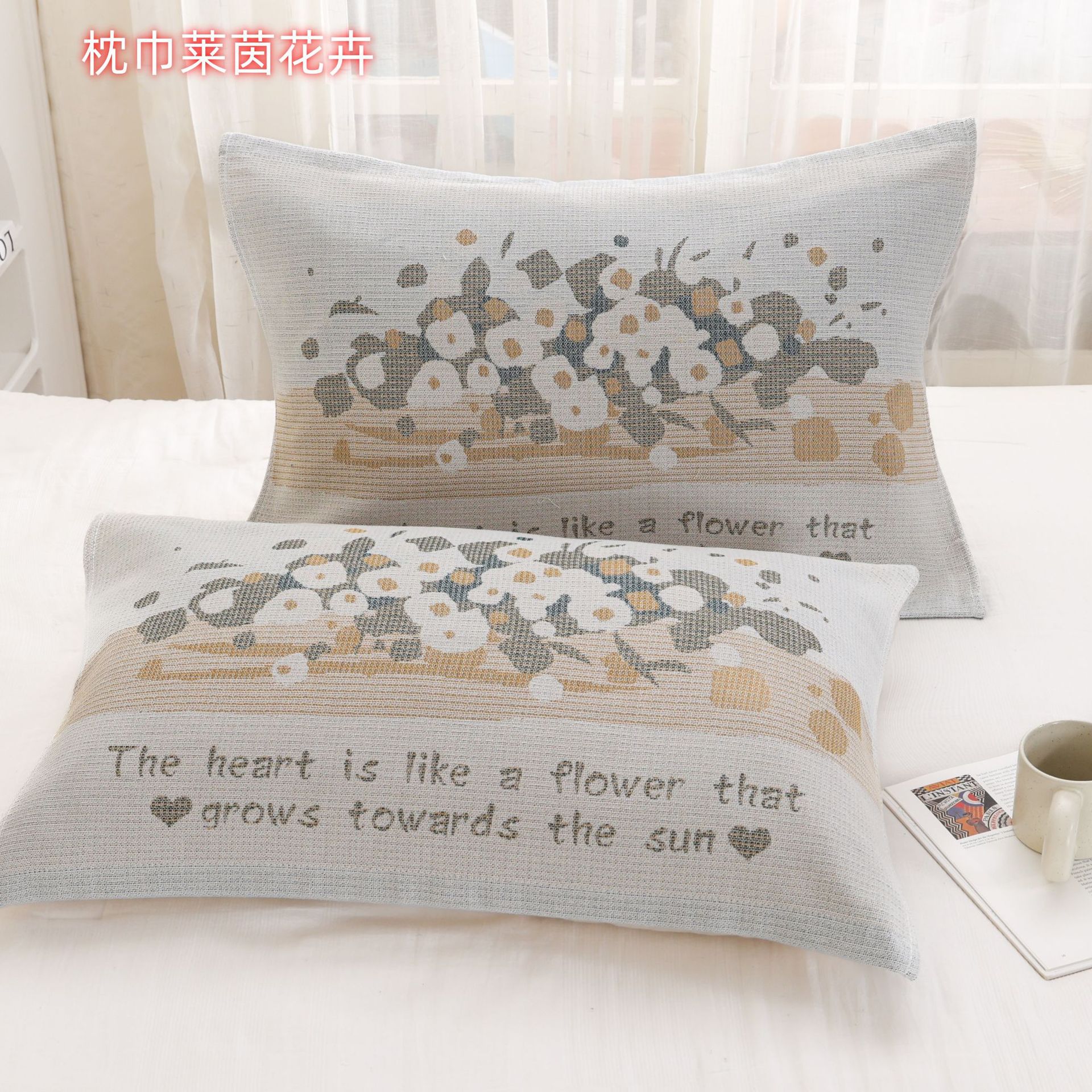 A类100%全棉枕头盖巾毛巾双层夹层纱布枕巾纯棉一对装全棉枕头巾