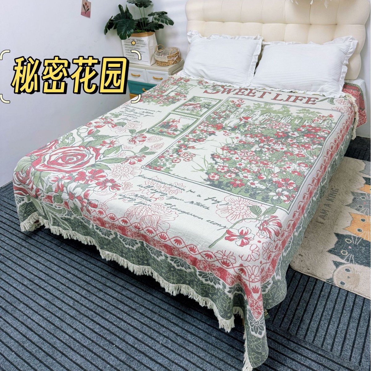 卸売 4 層麻ジャカード通気性アートベッドカバーホームダブルベッドブランケットシングルベッドシート昼休みブランケット