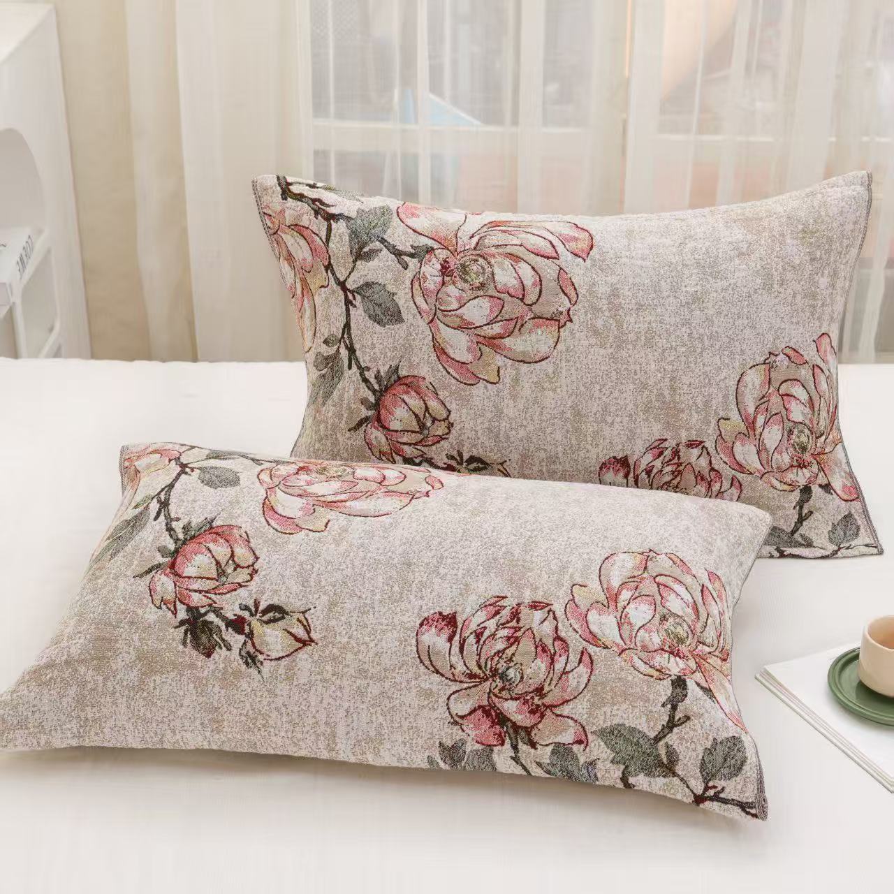 工場直販!花柄シリーズ純綿大人用枕カバー、4層ジャカードレトロスタイルライト高級枕カバーのペア