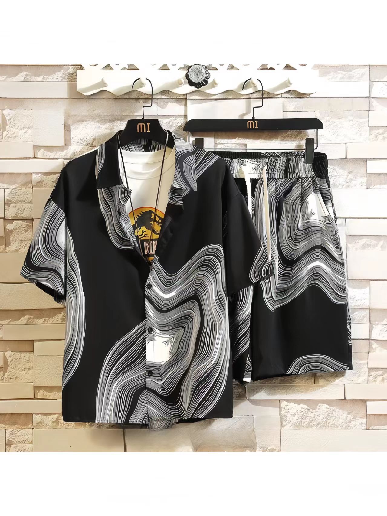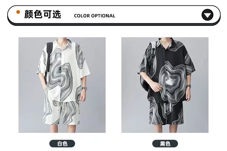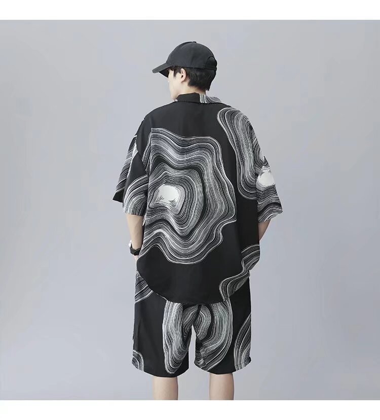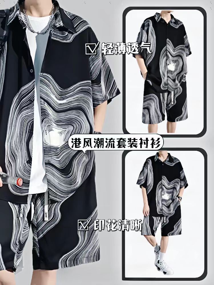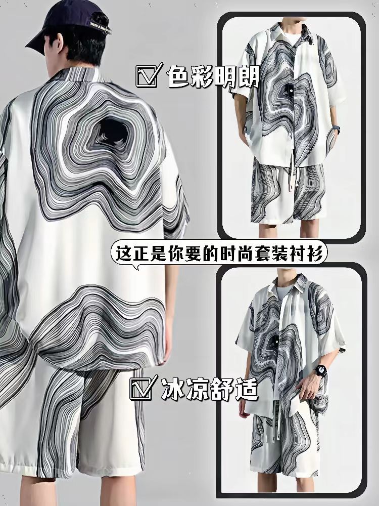 2025 新しい半袖シャツメンズスーツトレンディカジュアル夏ルーズセットシャツとショーツ 2 点セット