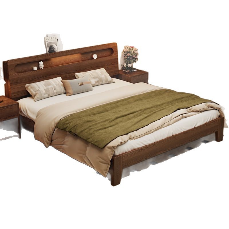 中世スタイルのライト高級オークランプベッドダブル無垢材ベッド 1.5m 家庭用ダブルベッド賃貸住宅 1.2m シングルベッド