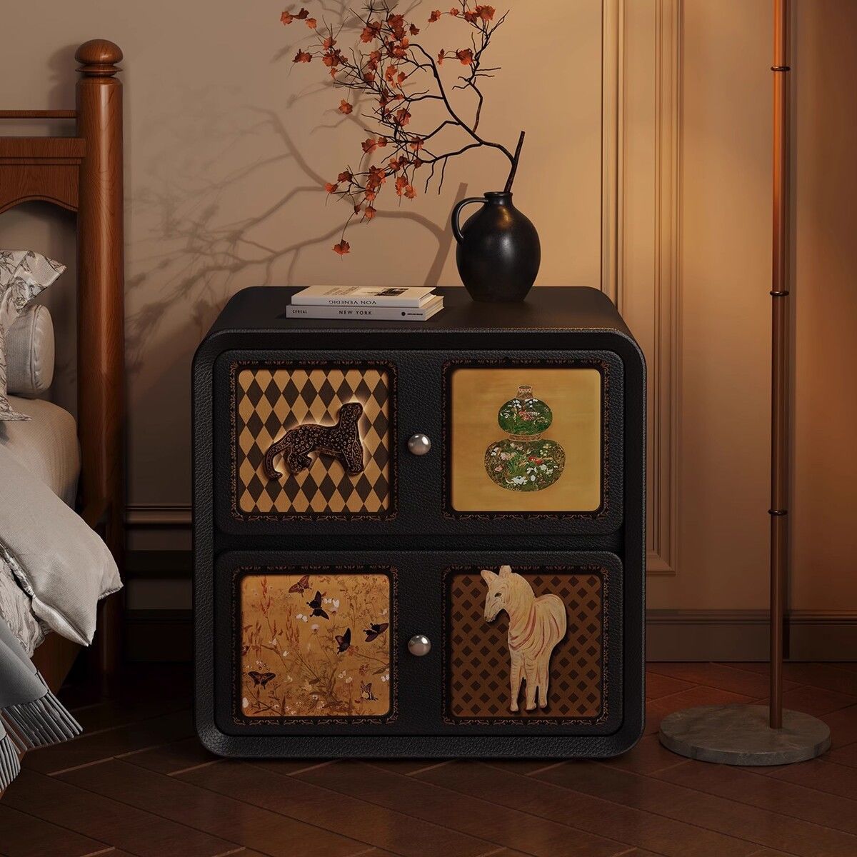 ベッドサイドテーブル、オール無垢材、軽い高級感、北欧レザーアート、シンプルモダンな収納、ベッドサイドテーブル、家庭用小型アパート