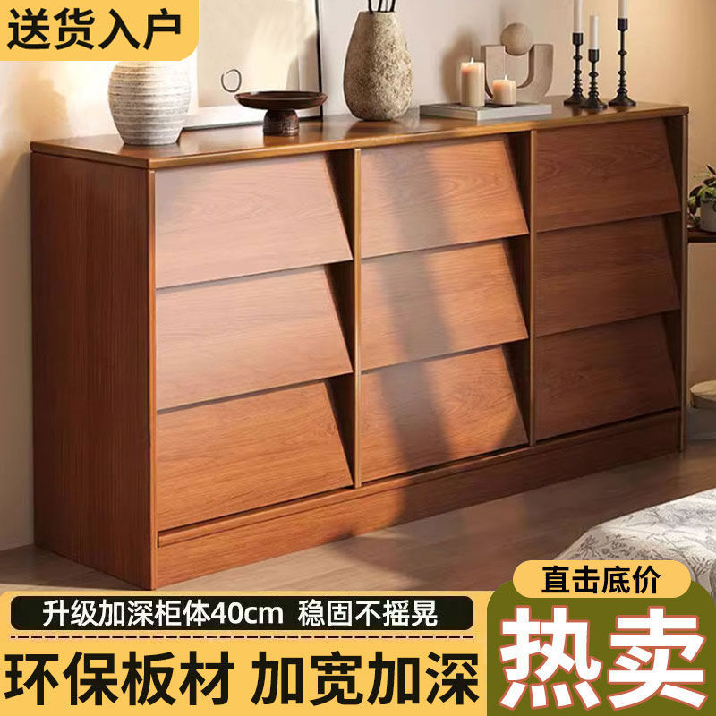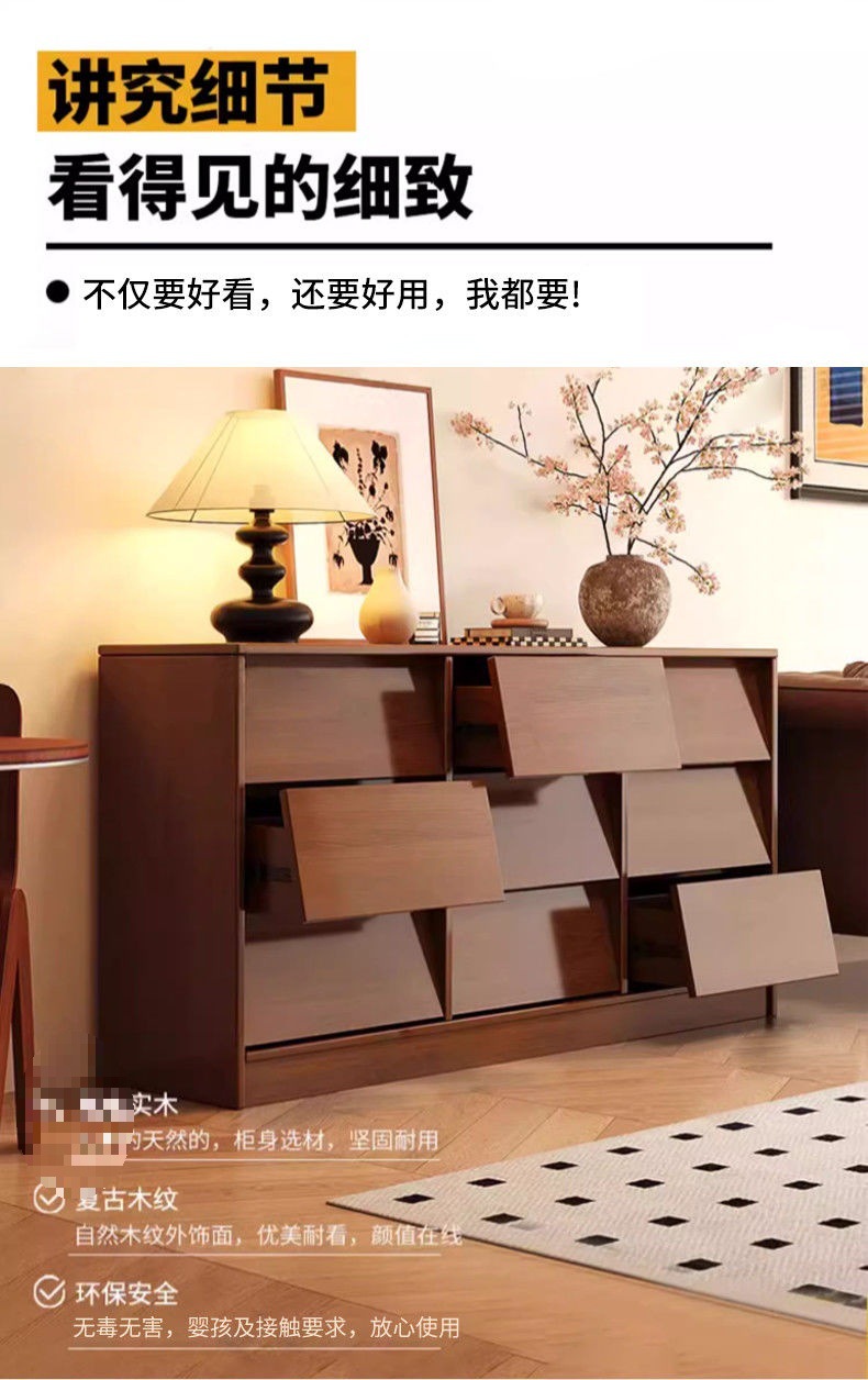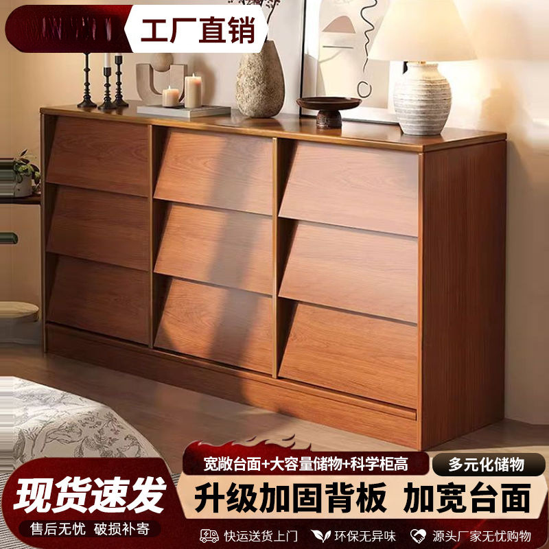 实木餐边柜一体靠墙收纳柜斗柜家用客厅茶水柜中古风柜子储物柜