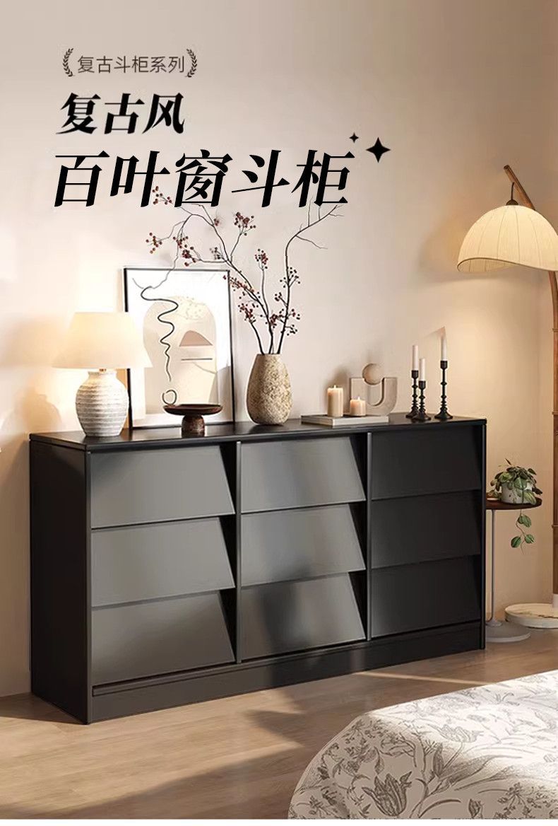 实木斗柜中古风家具储物柜客厅落地矮柜靠墙斗柜抽屉式收纳置物柜