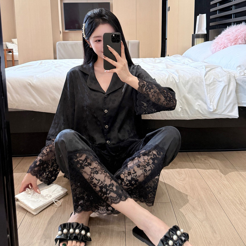 源头厂货2025冰丝睡衣女春季薄款长袖抖音直播时尚蕾丝家居服套装