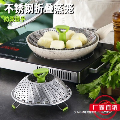 ステンレス折りたたみ蒸し器蒸し器蒸し器家庭用厨房隔水すき焼き伸縮蒸し器多機能ケージ