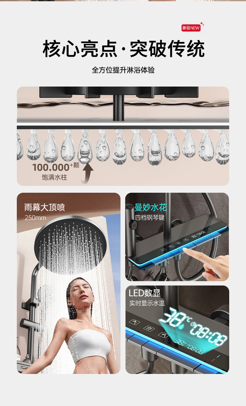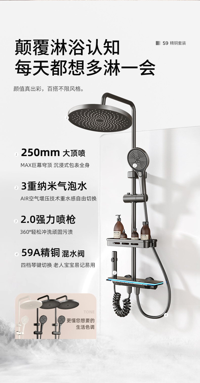 スプレー,マッサージ,温度制御,バブル,LEDライト,自動給水,雨が降る,他の