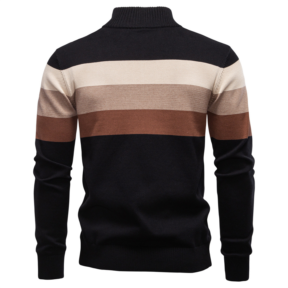 时尚跨境秋冬款男装半拉链男士毛衣套头条纹拼接针织衫卡其绿