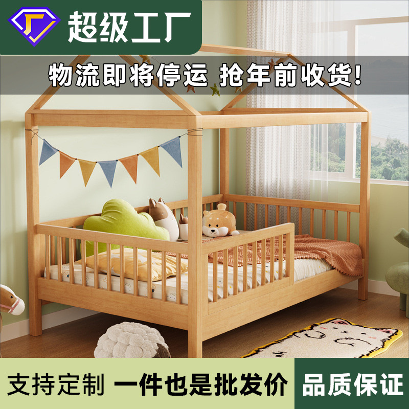 全実木児童ベッド男の子女の子プリンセスベッドガードレール付きテントベッド1メートル5男の子家テント樹屋ベッド
