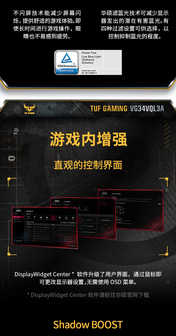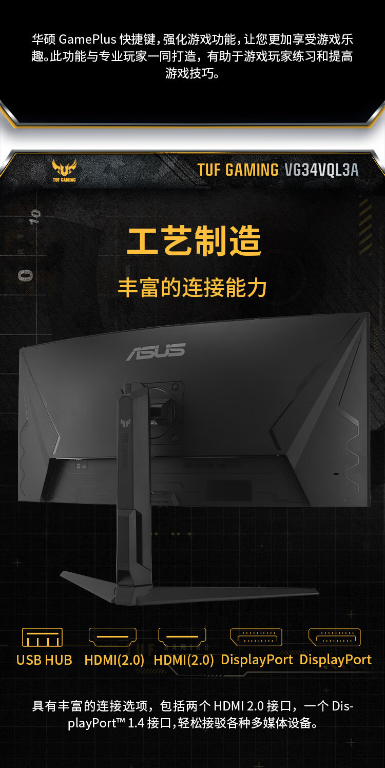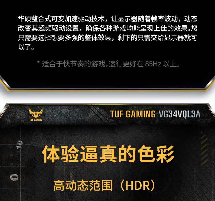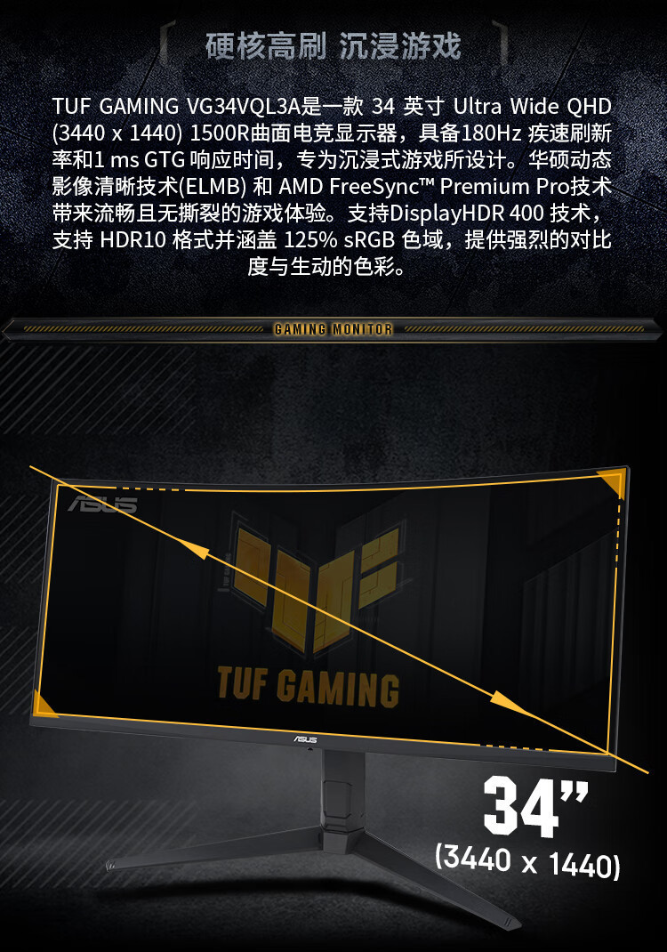 尺寸 TUF VG34VQL3A-34英寸2K180HZ带鱼屏