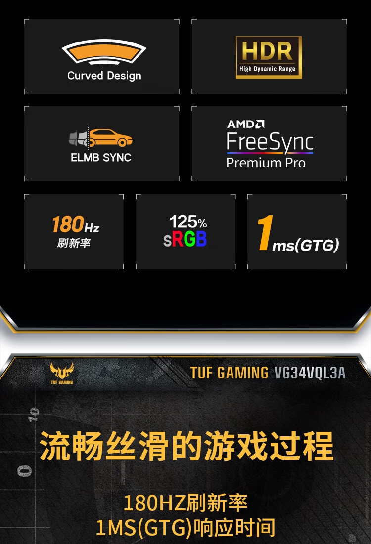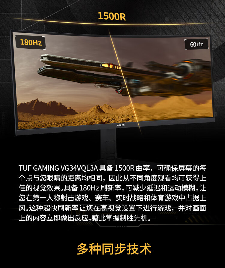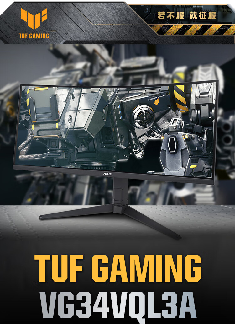 TUF VG34VQL3A战影 34英寸电竞显示器2K 180HZ WQHD曲面带鱼屏