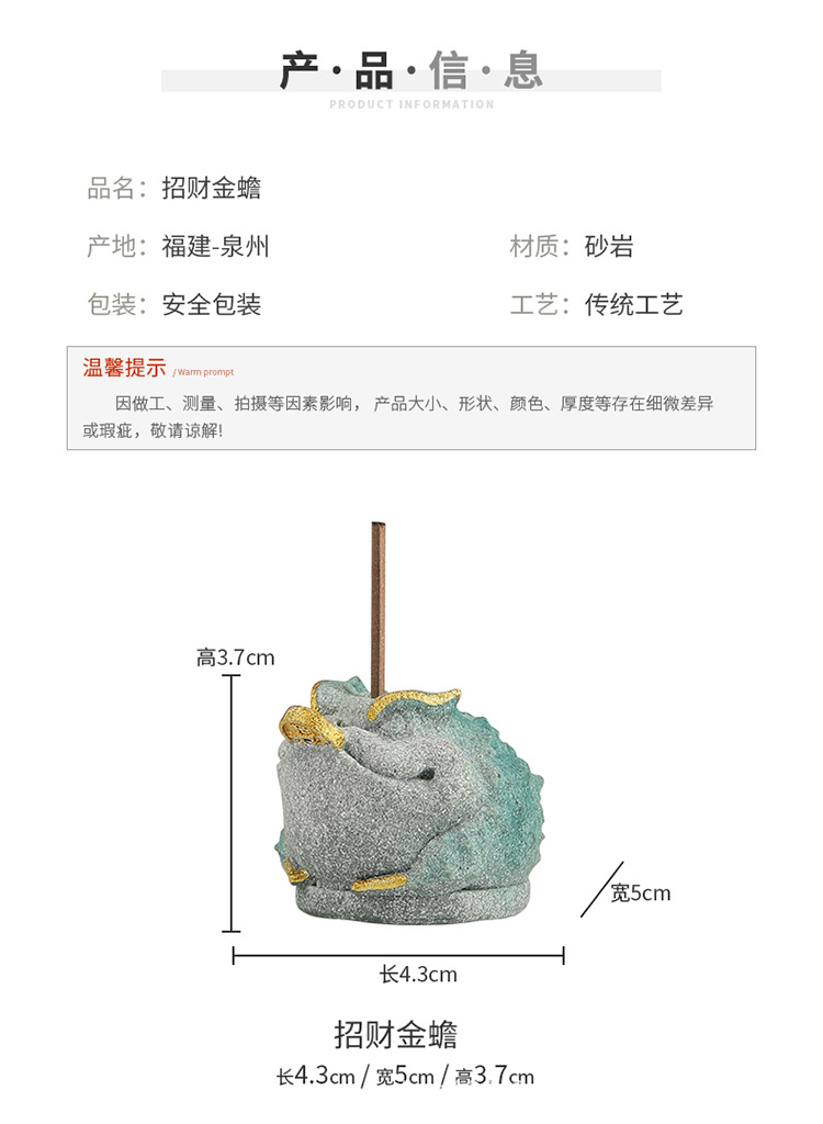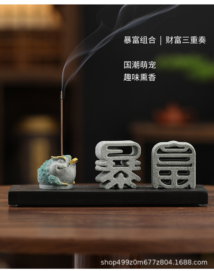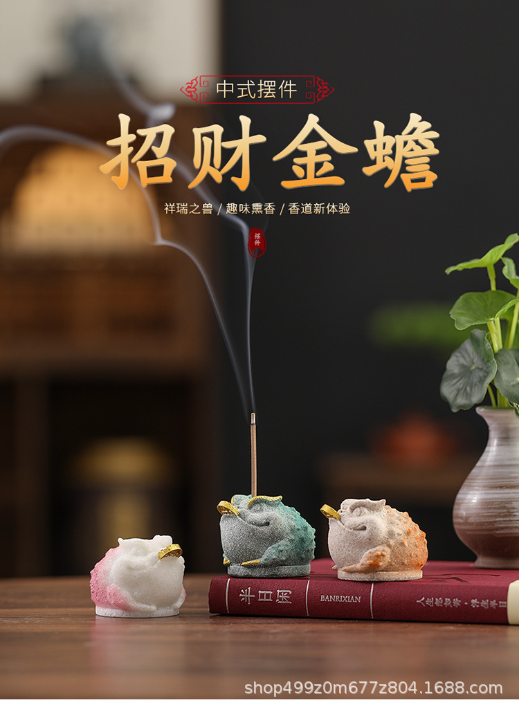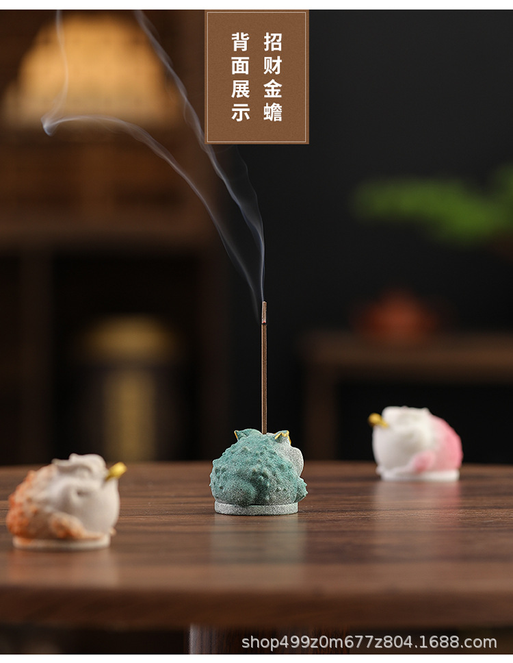 招财迷你金蟾线香炉家用室内香插香座可爱茶台桌面香薰炉摆件香器