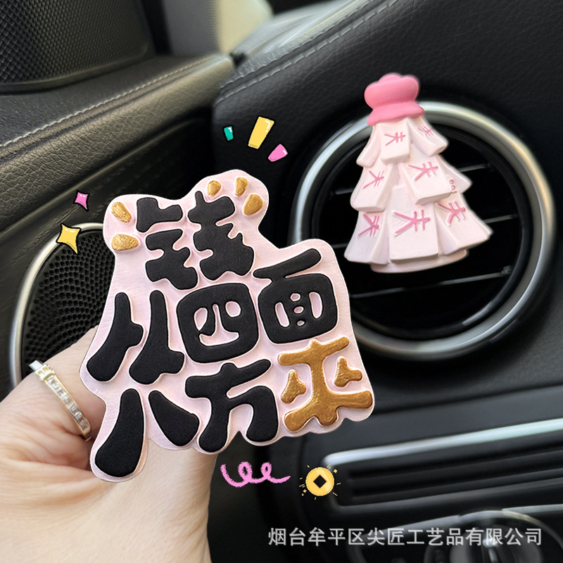 車の中の香薫の新型のアイデアの桃の粉の金の金持ちの文字の自動車の風口の拡香の石の車内の装飾の置物