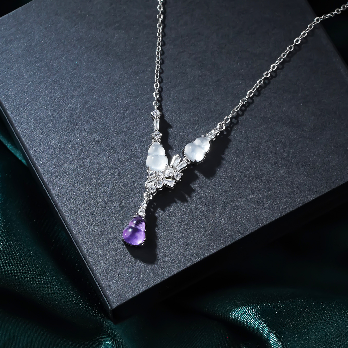 新中式天然紫水晶水沫玉福禄葫芦女镶嵌高级感锁骨链吊坠轻奢时尚