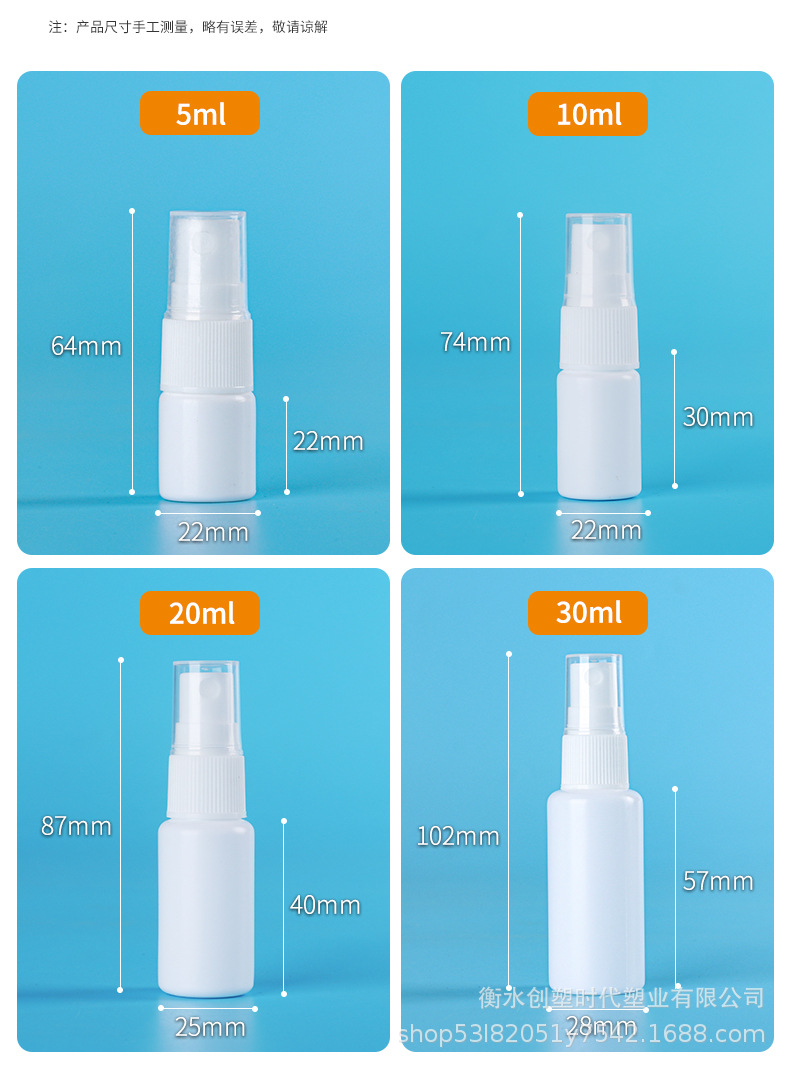 批发现货10 ml塑料白色遮光喷雾瓶液体按压喷雾瓶子加厚分装瓶