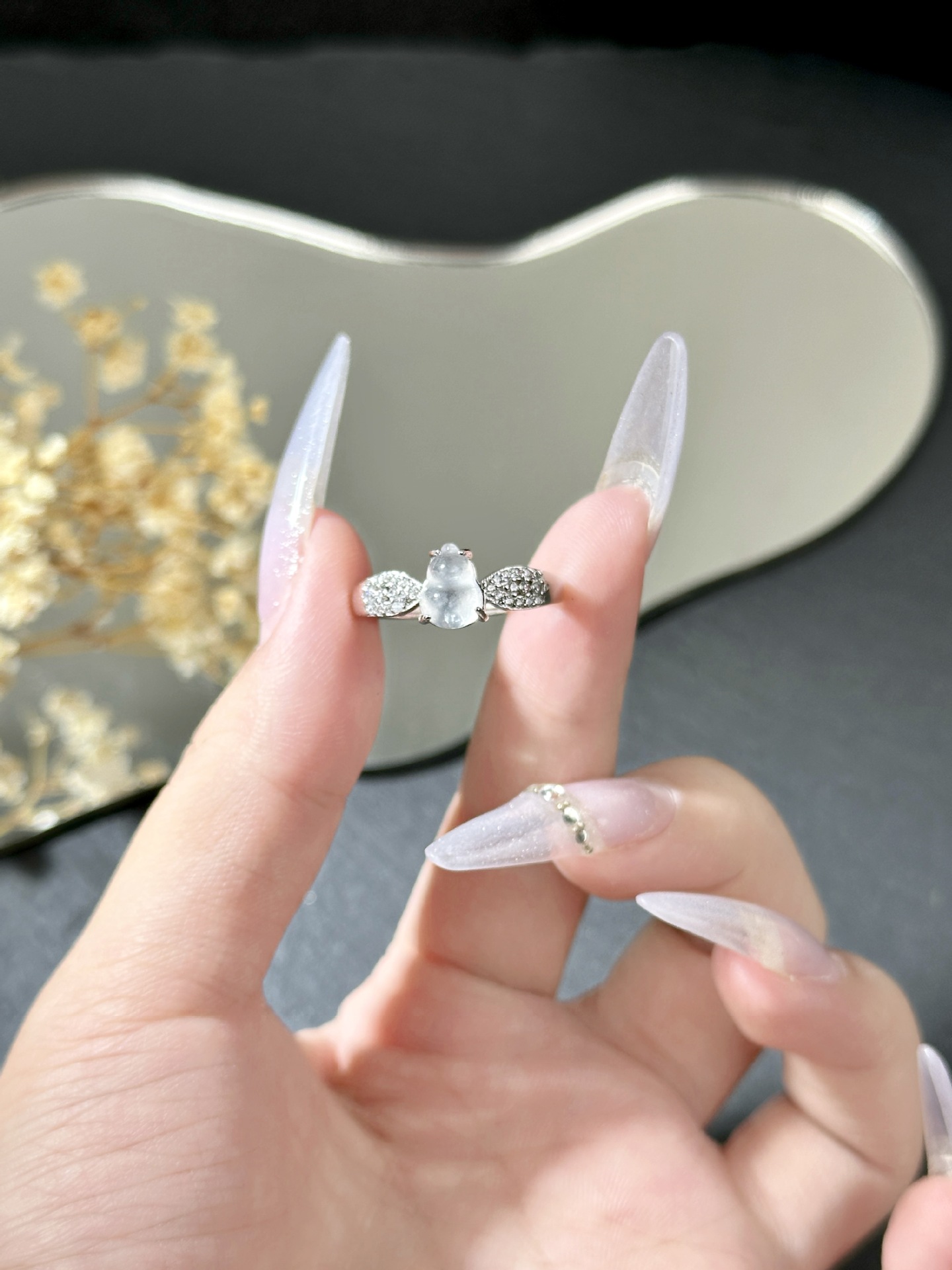 新中国式天然A商品藍水翡翠男女指輪ファッション通勤保色百合軽贅沢ファッションリング