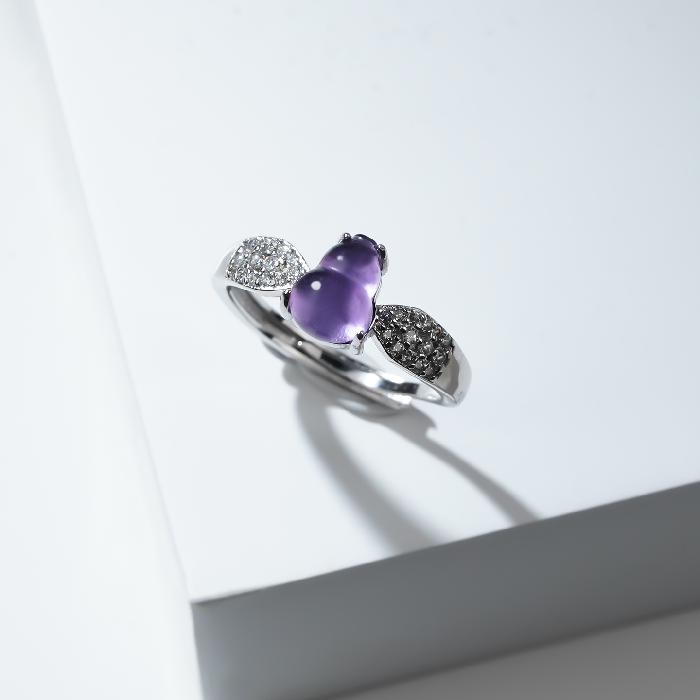 新中式天然水沫玉紫水晶ひょうたんリング、ジルコン象嵌、ニッチな軽贅沢、高級感、人差し指用女性用リング