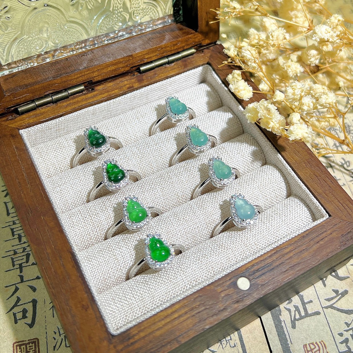 新中国式のヒョウタンの男女のデザインは口を開けて指輪の天然の青い水の翡翠の陽緑の軽い豪華なファッションを調節することができます。
